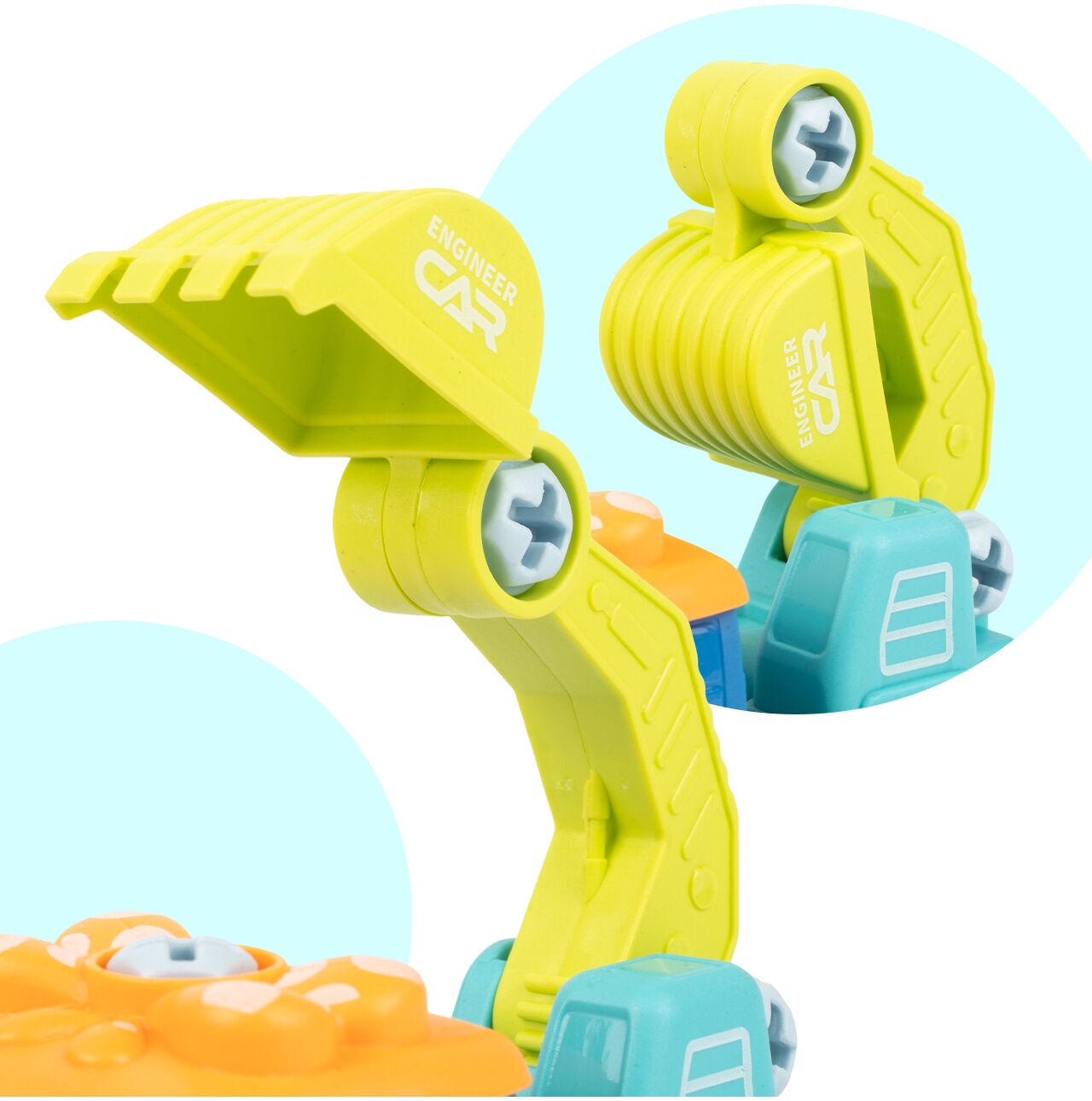 Koparka ma ruchome ramię, a pojazdy robocze zachęcają do zabawy w akcję: ładowanie, przewożenie i praca na placu budowy. Dzięki temu zestaw nie kończy się na samym skręcaniu – po złożeniu zaczyna się druga część zabawy: jazda i scenki.