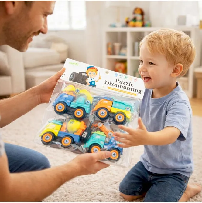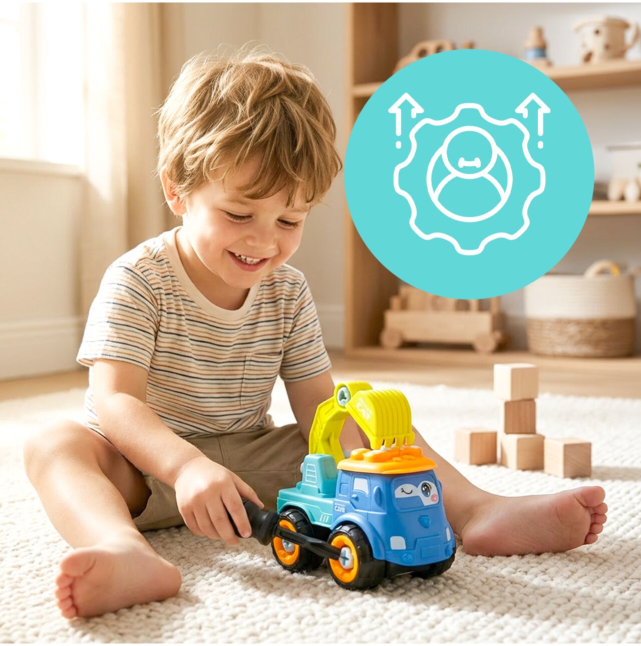 Zestaw jest gotowy do zabawy po wyjęciu: śrubokręt, śrubki i 4 pojazdy. Dziecko od razu ma zadanie i satysfakcję. To produkt, który robi robotę: zajmuje, rozwija i daje radość.