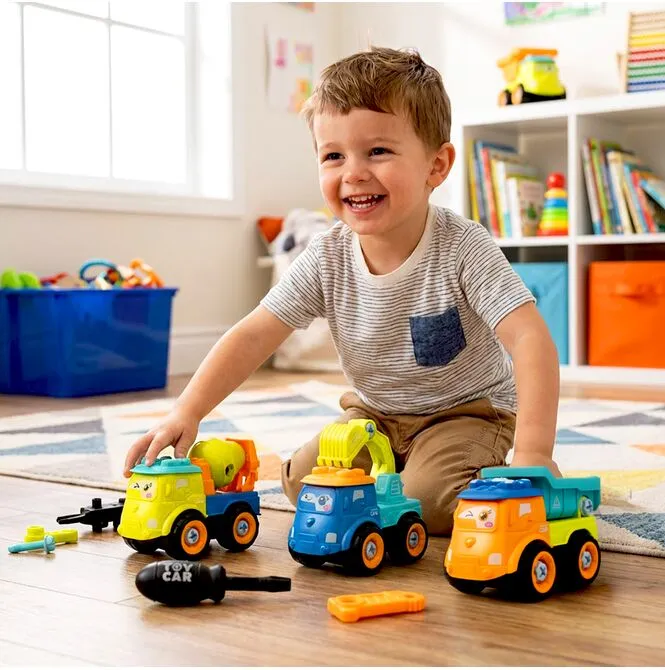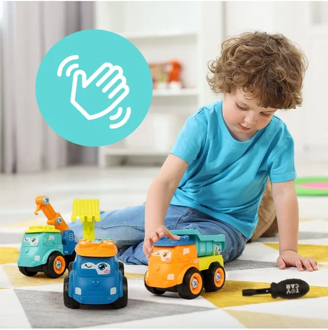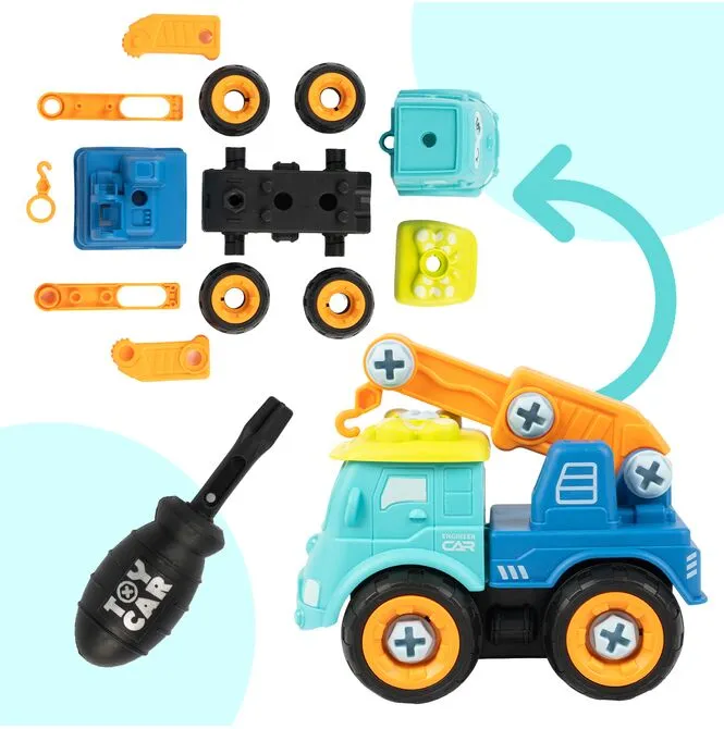 POJAZDY BUDOWLANE ZESTAW DO SKRĘCANIA I ROZKRĘCANIA DIY 4 AUTA ŚRUBOKRĘT 3+