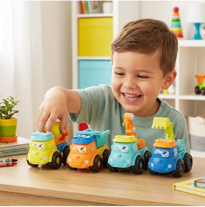 To nie jest jedno autko, które po chwili ląduje w kącie. Masz aż 4 pojazdy budowlane: koparkę, wywrotkę, betoniarkę i dźwig. Dziecko może urządzić własny plac budowy: wykopy, transport, mieszanie betonu i przenoszenie ładunków.
