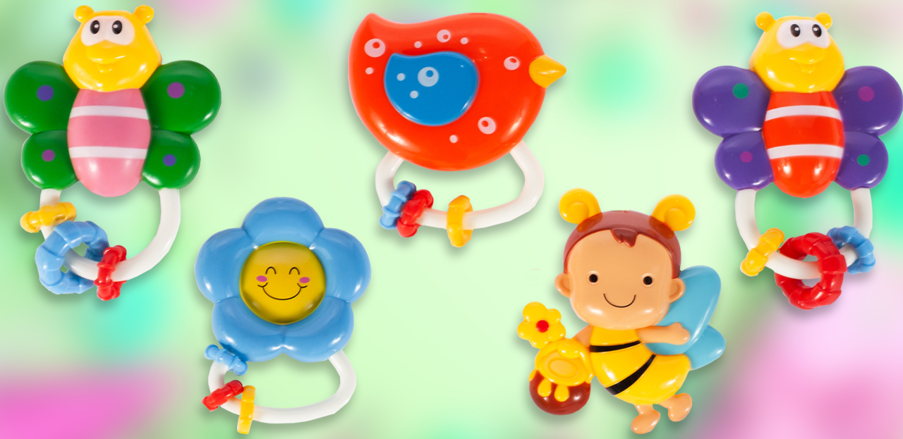 Všechna chrastítka mají uvnitř kuličky, které při zatřesení příjemně chrastí.