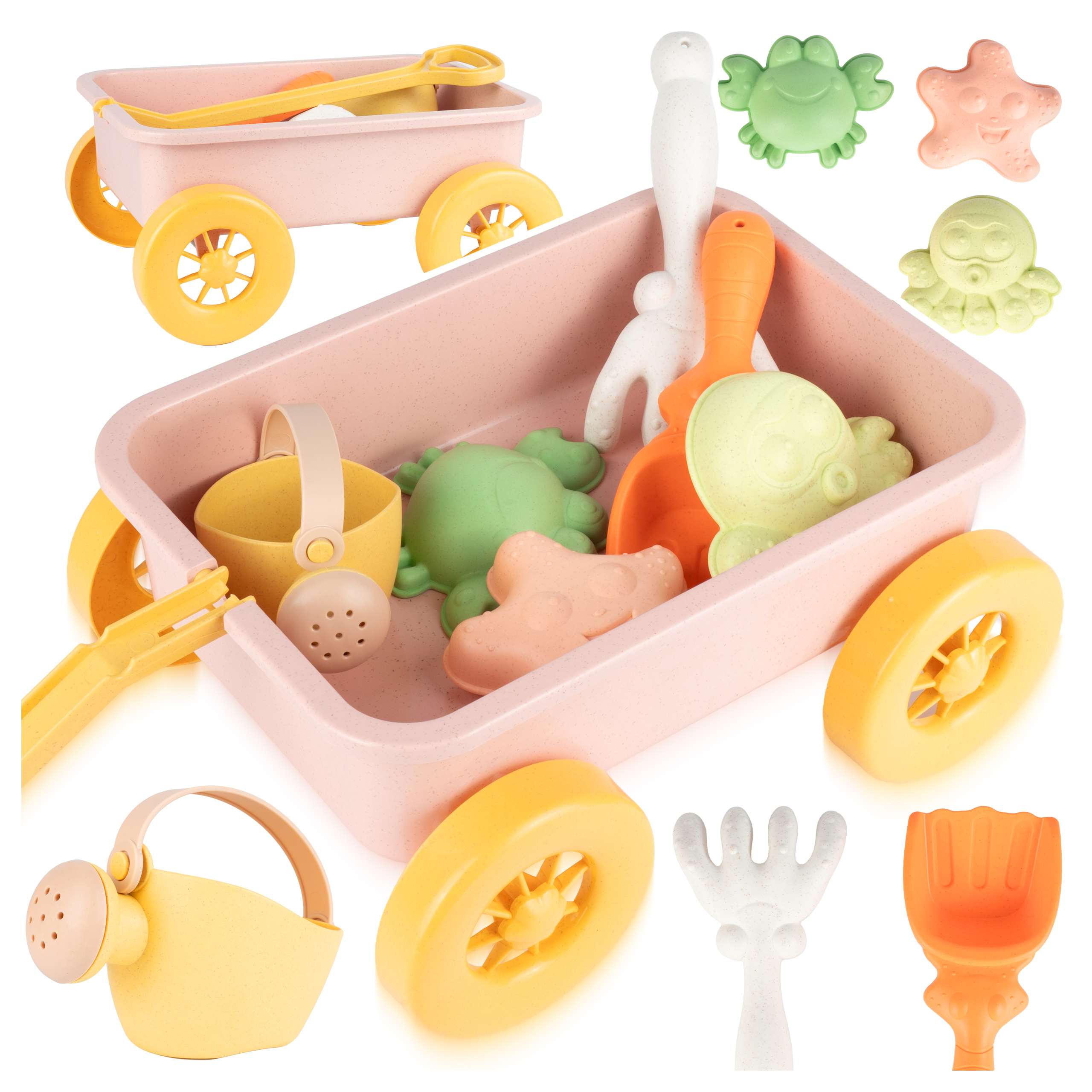 Tato sada se hodí všude, kde má dítě prostor pro volné hraní. Ať už je to pískoviště, zahrada, letní pláž nebo vodní hra na terase, tento kočárek s příslušenstvím nabízí nepřeberné množství možností a snadno se bere s sebou. Proto je skvělým dárkem pro více použití.