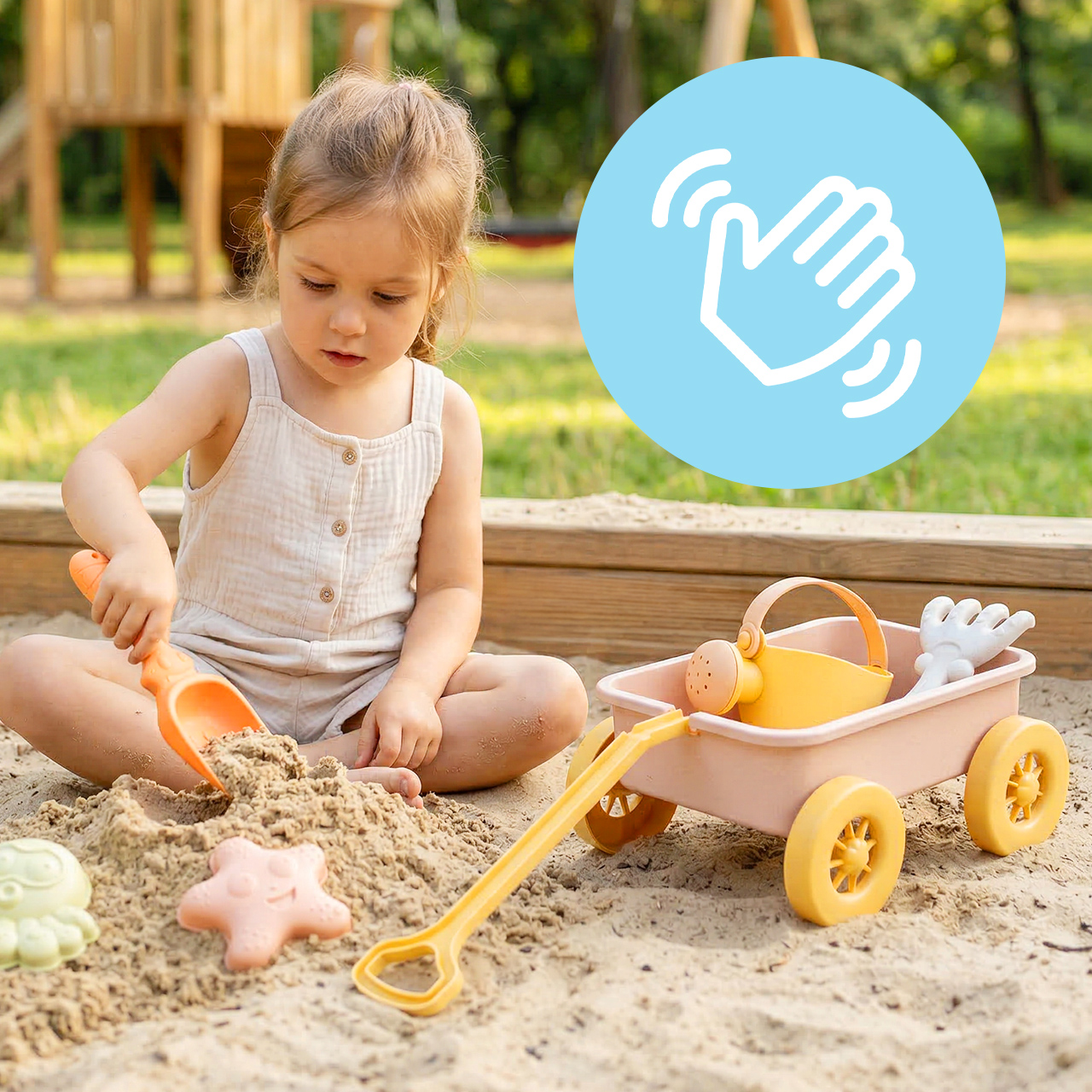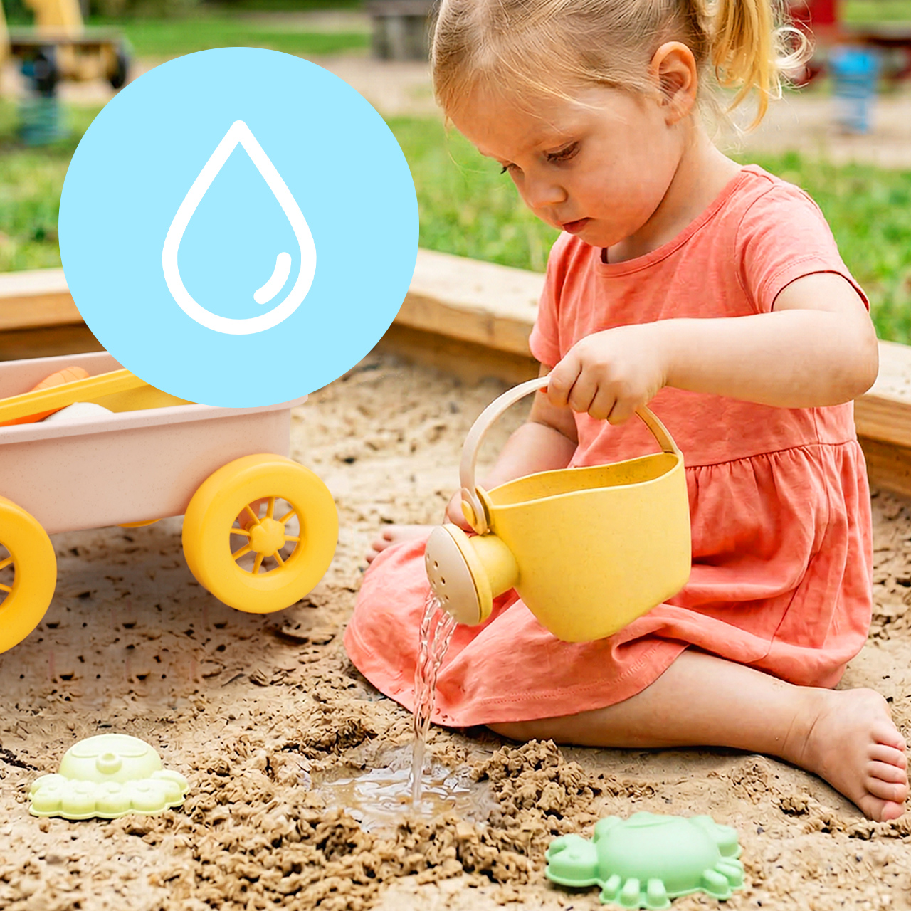 - Použití: pískoviště, pláž, zahrada, senzorická hra s pískem a vodou
