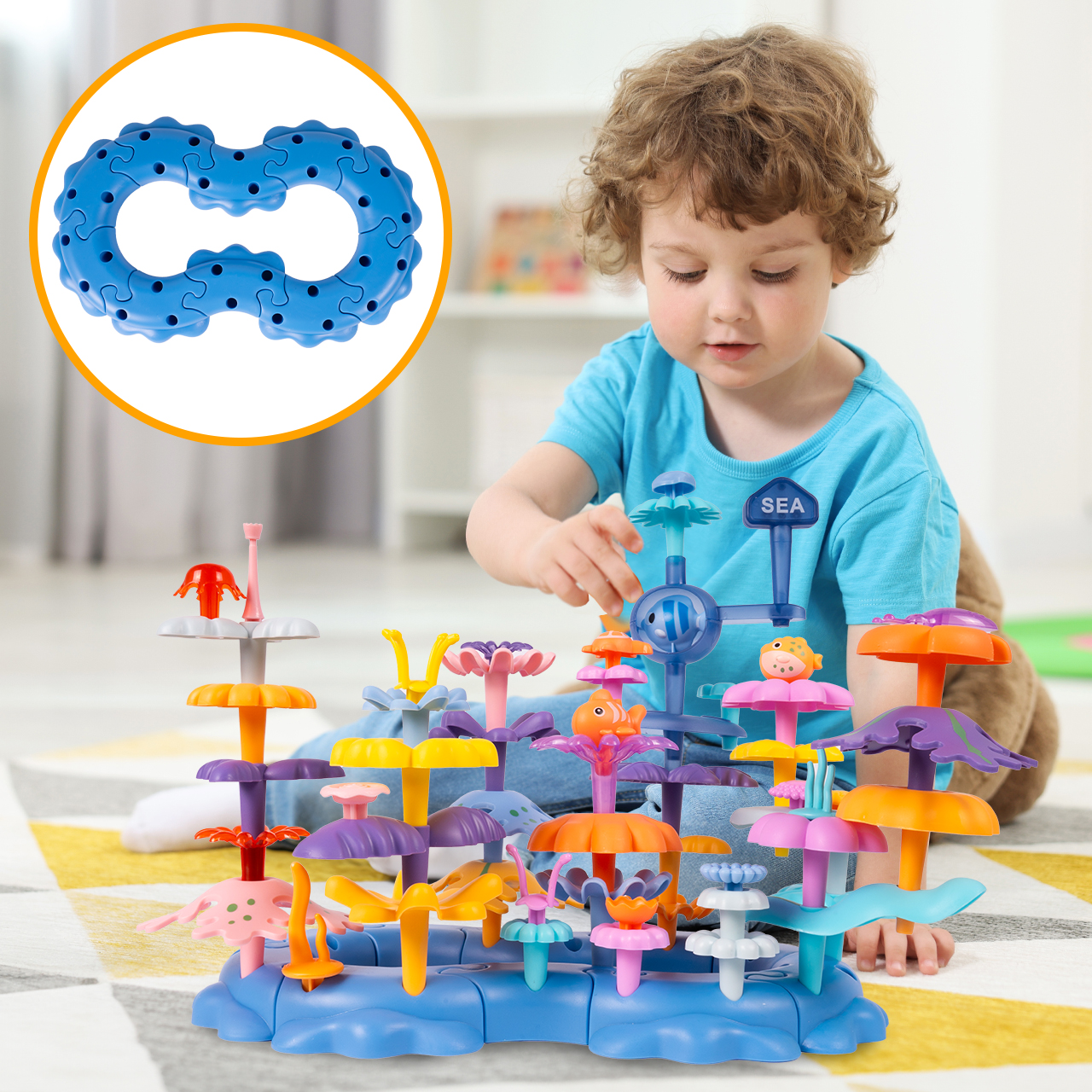 Tyto nenápadné květinové kostky slouží vzdělávacím účelům a podporují učení barev, tvarů, principů rovnováhy a logického myšlení . Jsou vynikajícím nástrojem pro smyslový a kognitivní rozvoj . Hraní si se spojovacími dílky může být prvním krokem k učení se o designu, inženýrství a dokonce i k diskusi o světě moří a oceánů .