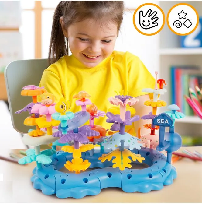 Mořské korálové bloky – Mořské květiny vám umožňují volně kombinovat jednotlivé části a vytvářet trojrozměrné kompozice : květiny, větvičky, „korálové“ kytice. Je to perfektní úvod do světa kutilství – podporuje manuální dovednosti, učí trpělivosti a stimuluje prostorovou představivost a každý dílek...tato budova se stává záminkou pro další experimenty.