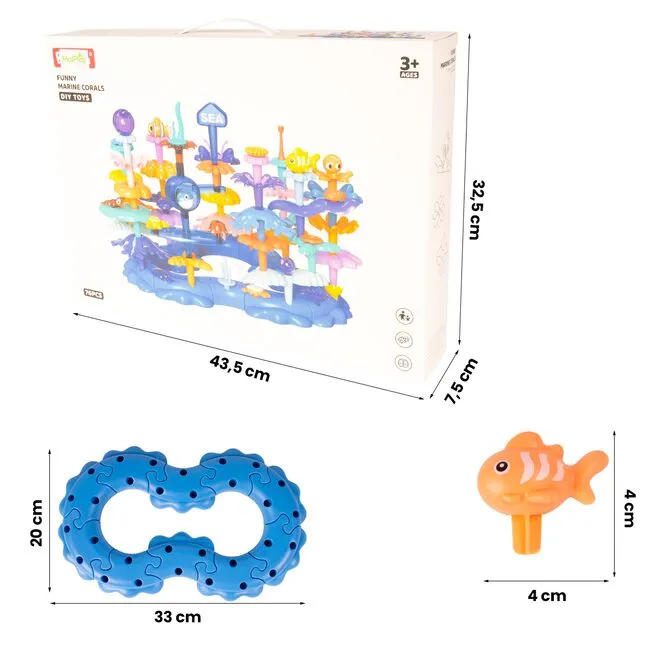Sada mořských korálů a mořských bloků, hračka pro děti, rybičky, 76 dílků.