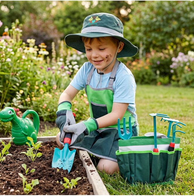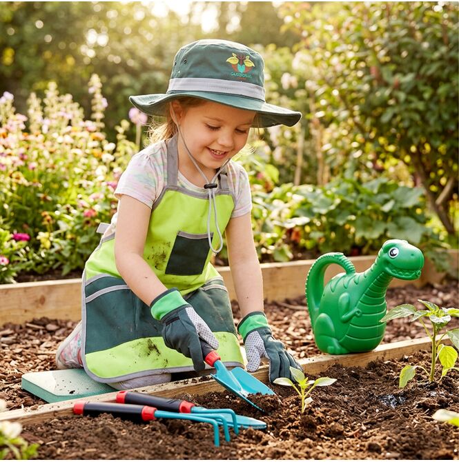 Tato sada byla vytvořena s ohledem na mladé milovníky přírody a aktivní hry. Konev na zalévání, rukavice a praktické nářadí umožňují dětem zalévat, sázet a pečovat o rostliny jako opravdoví zahradníci. Tento typ hry rozvíjí samostatnost, učí zodpovědnosti a poskytuje dětem spoustu uspokojení.