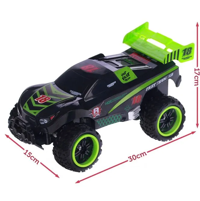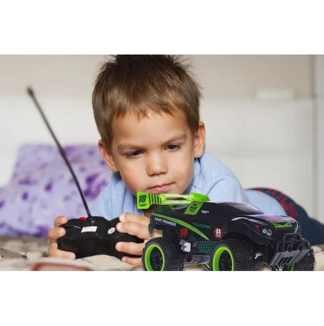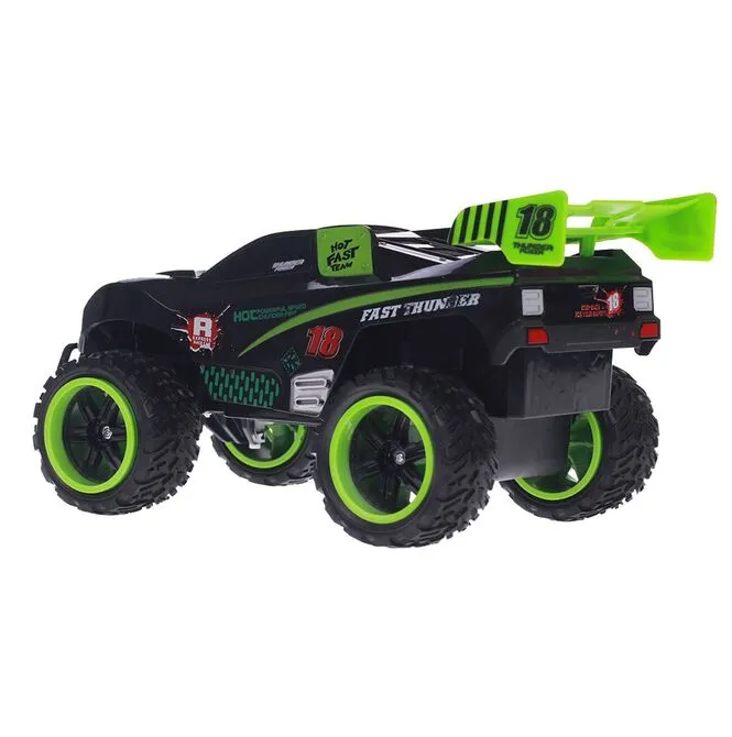 - Model jest stworzony w oparciu o wytrzymałe materiały, posiada duży zderzak i giętkie tworzywo nadwozia, dzięki czemu jest odporny na uderzenia. Dodatkowo koła posiadają profilowane opony na wyboiste podłoże.