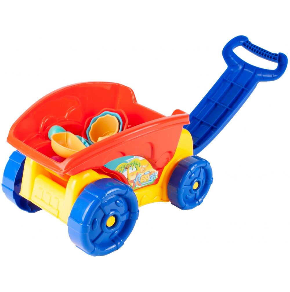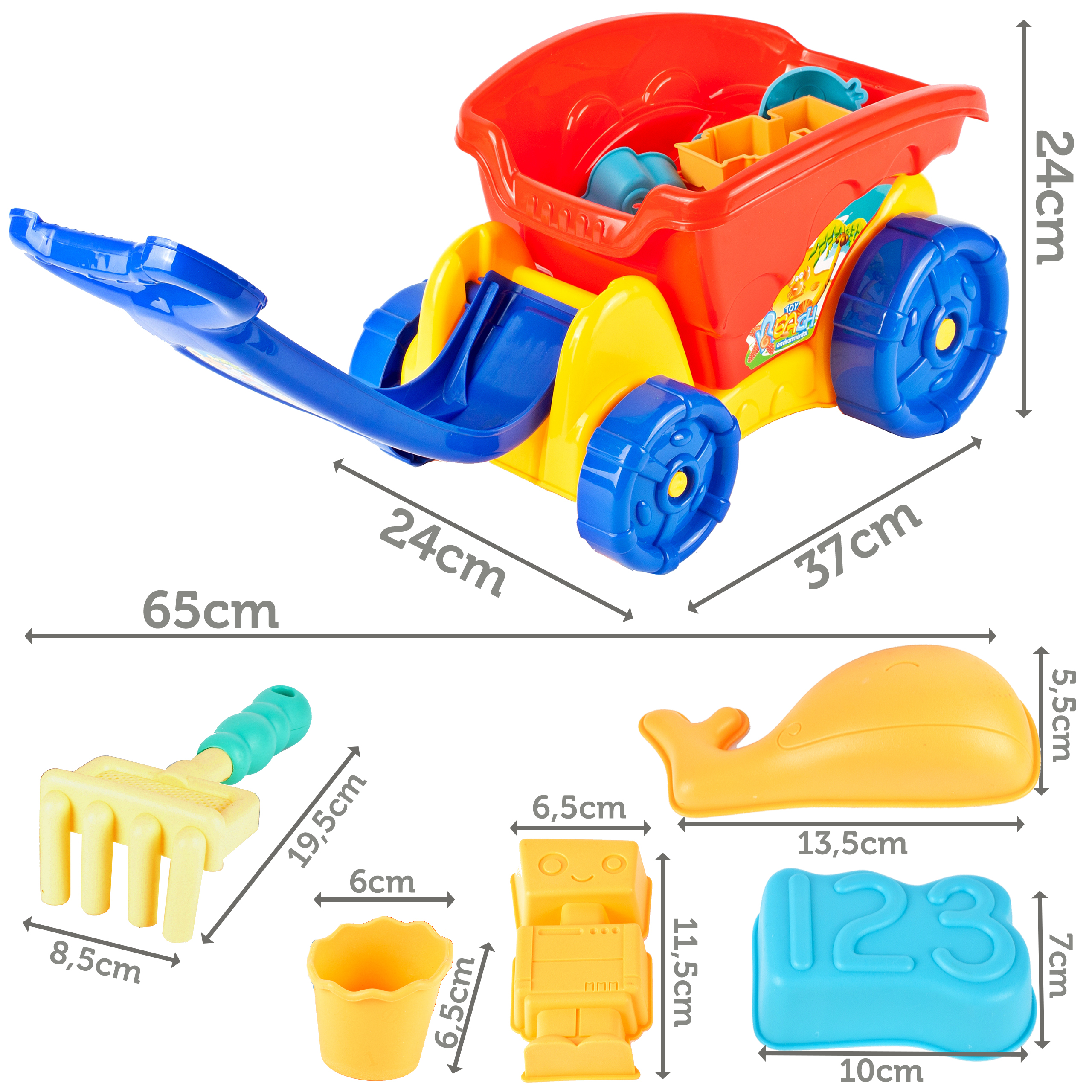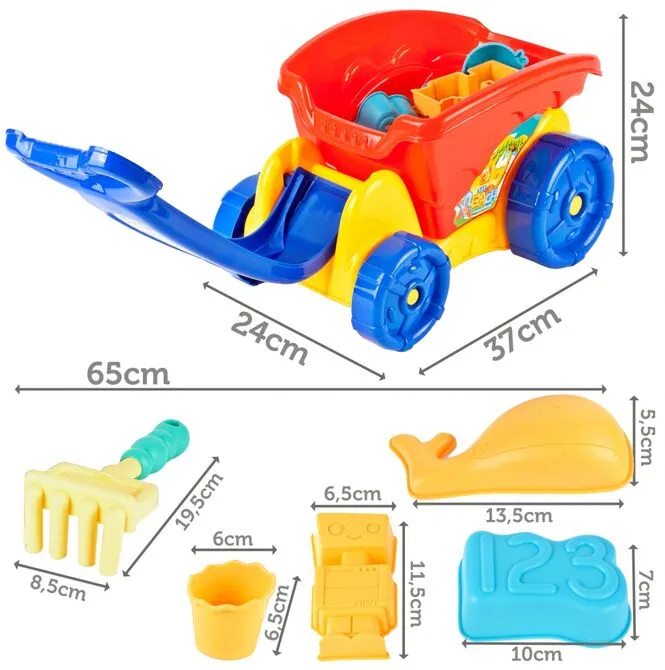 Sie müssen keine schweren Sandeimer mehr am Strand tragen! Von nun an kann er es problemlos mit dem Kinderwagen transportieren und dank der Kippfunktion wird er es an den Ort werfen, an dem er es möchte!