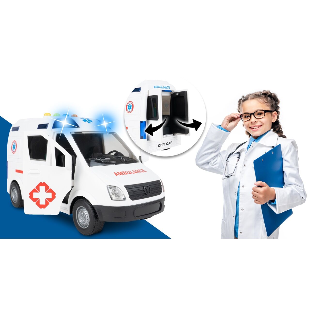 Po stisknutí tlačítek na střeše auta dítě uslyší různé zvuky, včetně: nastartování vozidla, zazní siréna, houkačka a sanitka rozsvítí světla ! Fantastická zábava nikdy neskončí!