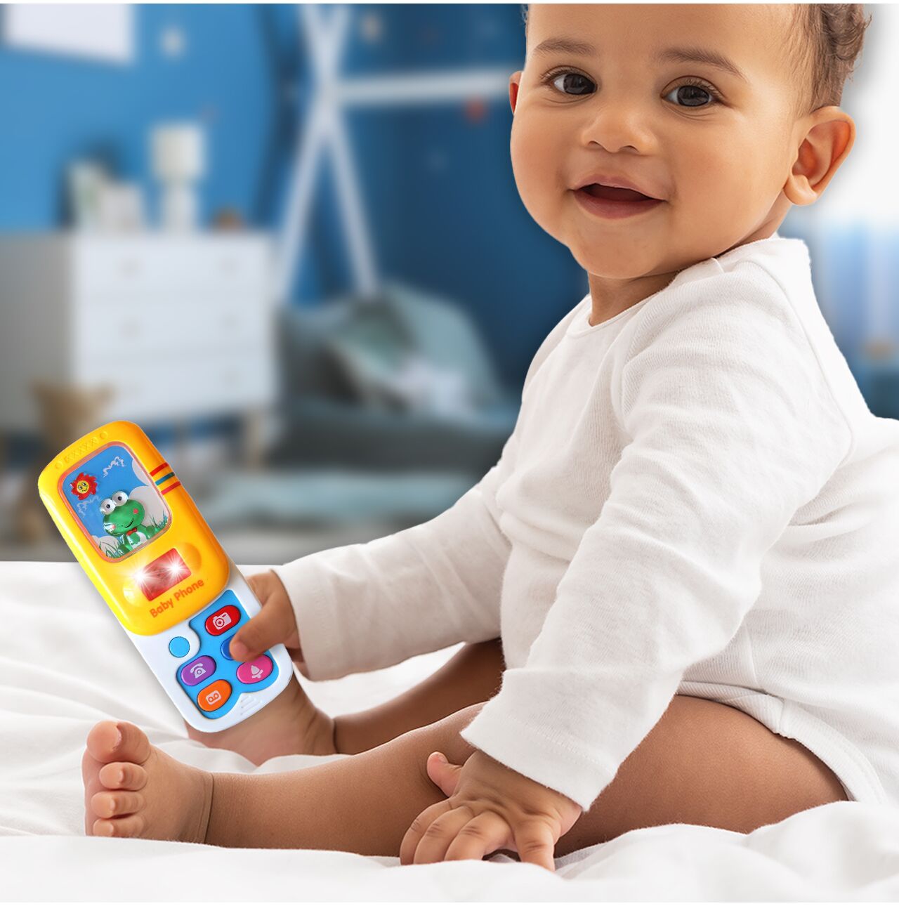 - Bildschirmschiebefunktion wie bei einem echten Telefon, was den Realismus erhöht und das Kleinkind fesselt.