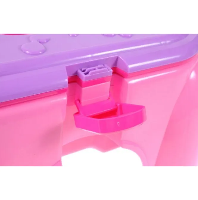 Das Set enthält Aufkleber, mit denen das Mädchen den Schminktisch und die Utensilien selbst dekorieren kann. Im Inneren ist ein Sicherheitsspiegel montiert.