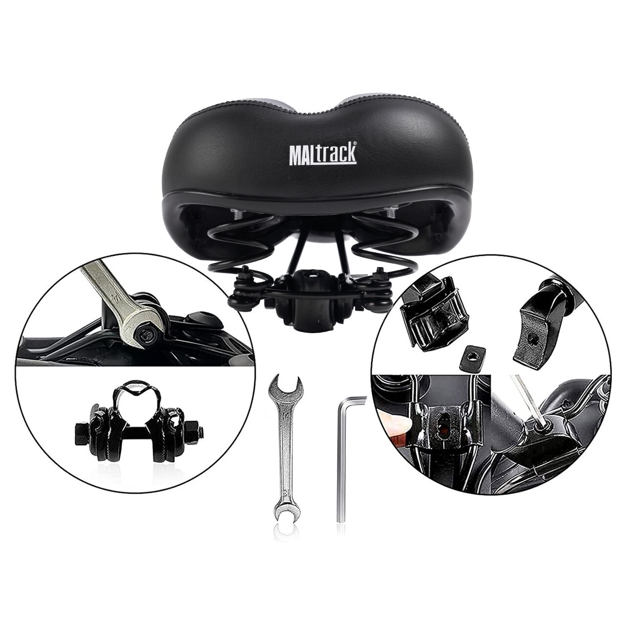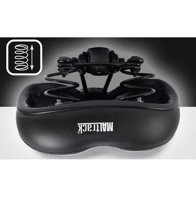 Pohodlná cyklistická sedačka MalTrack je čalúnená hrubou, hustou pamäťovou penou s vysokou hustotou. Odolný materiál na vonkajšej strane sedla chráni pred prasklinami, nárazmi a mrazovými vlnami. Odolné, pohodlné, pružné a veľmi mäkké, lepšie chránia zadok! Náš systém tlmenia nárazov absorbuje nárazy a vibrácie, čím znižuje nepohodlie spôsobené nerovným terénom.
