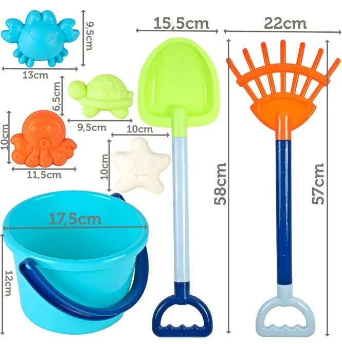 Ein tolles Strandspielzeugset, das auch im Sandkasten gut funktioniert.