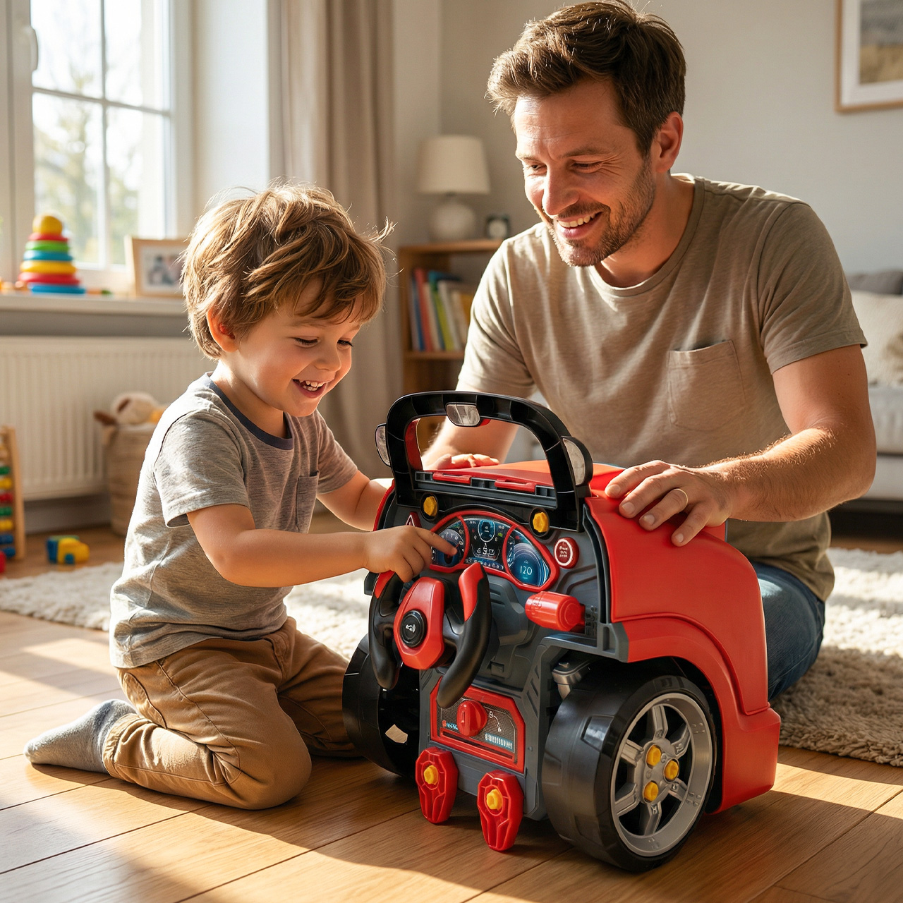 Zabawka została stworzona tak, aby dziecko mogło samodzielnie montować i demontować wybrane elementy. To nie tylko świetna rozrywka, ale też trening precyzji, cierpliwości i koordynacji ręka–oko. Dziecko nie tylko ogląda zabawkę, ale aktywnie z nią pracuje.