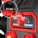Praktyczny schowek pozwala przechowywać drobne elementy i narzędzia w jednym miejscu. To wygodne rozwiązanie dla dziecka i rodzica, bo po skończonej zabawie łatwiej utrzymać porządek i nie zgubić małych części.