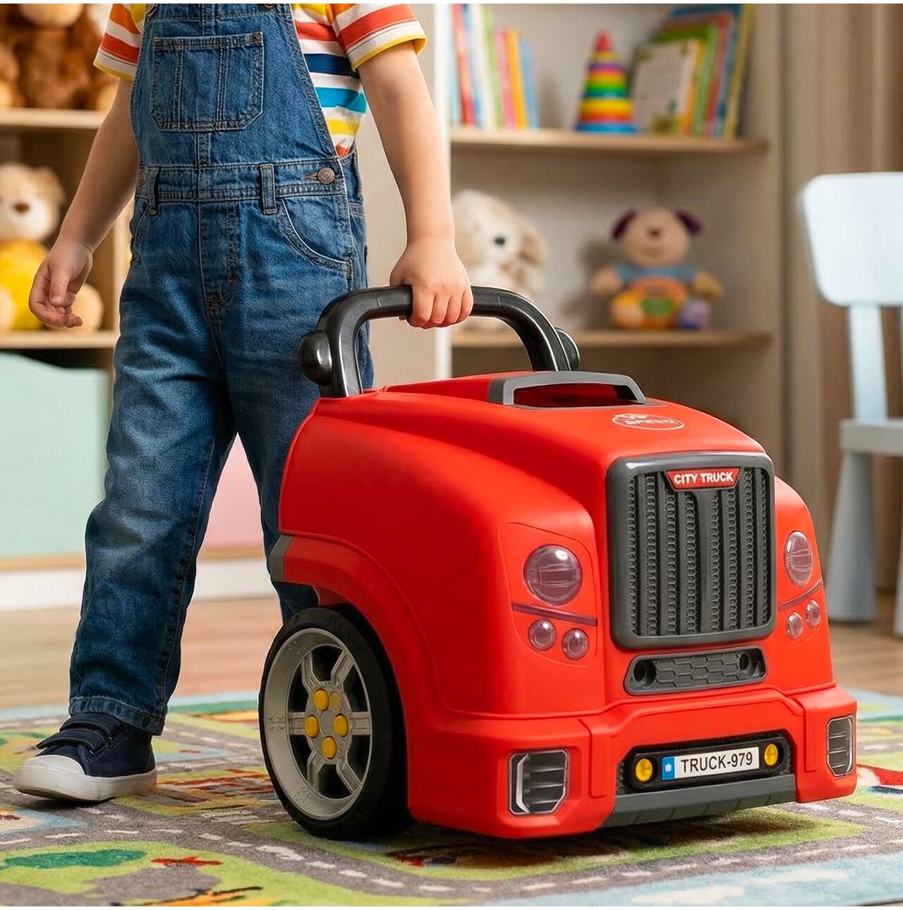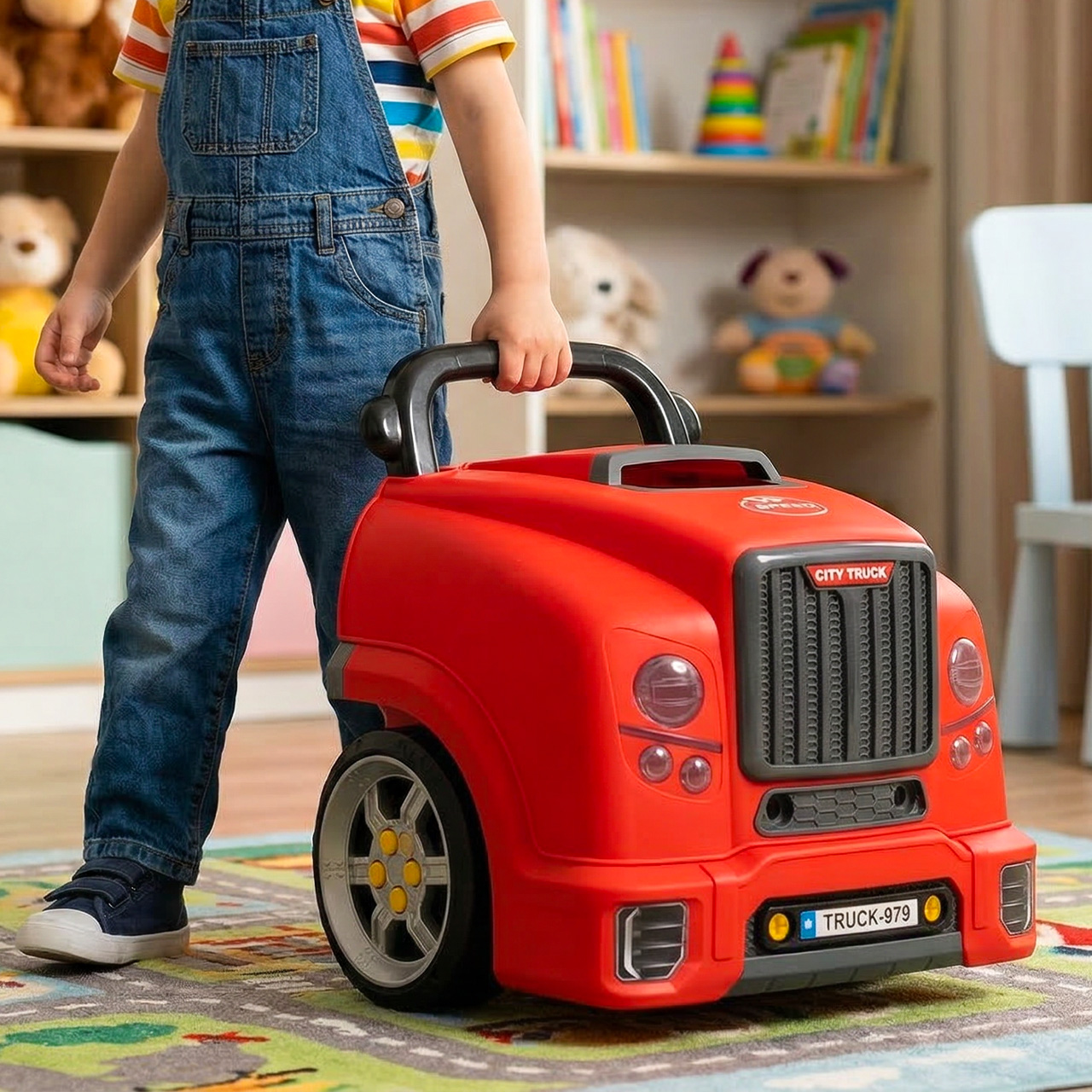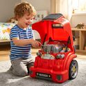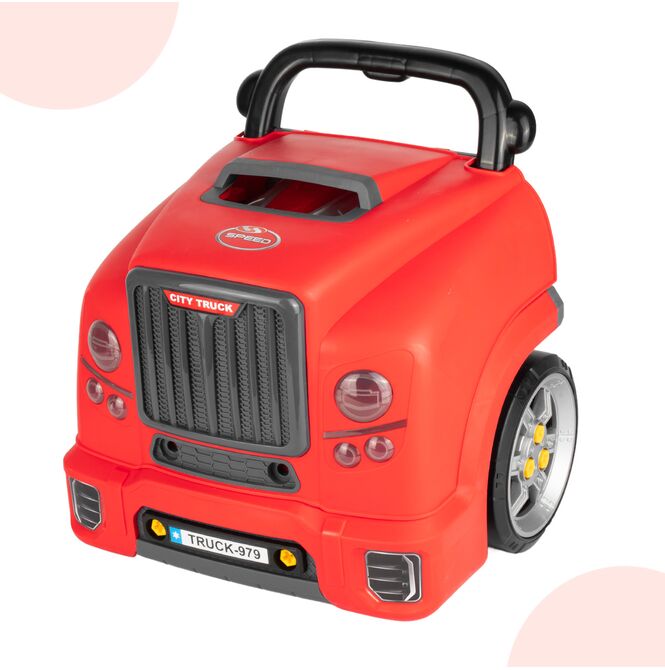 Mocna czerwień, duże koła i styl ciężarówki sprawiają, że zabawka wygląda bardzo atrakcyjnie. To model, który świetnie prezentuje się na zdjęciach, przyciąga uwagę dziecka i od razu budzi skojarzenie z prawdziwym autem warsztatowym.