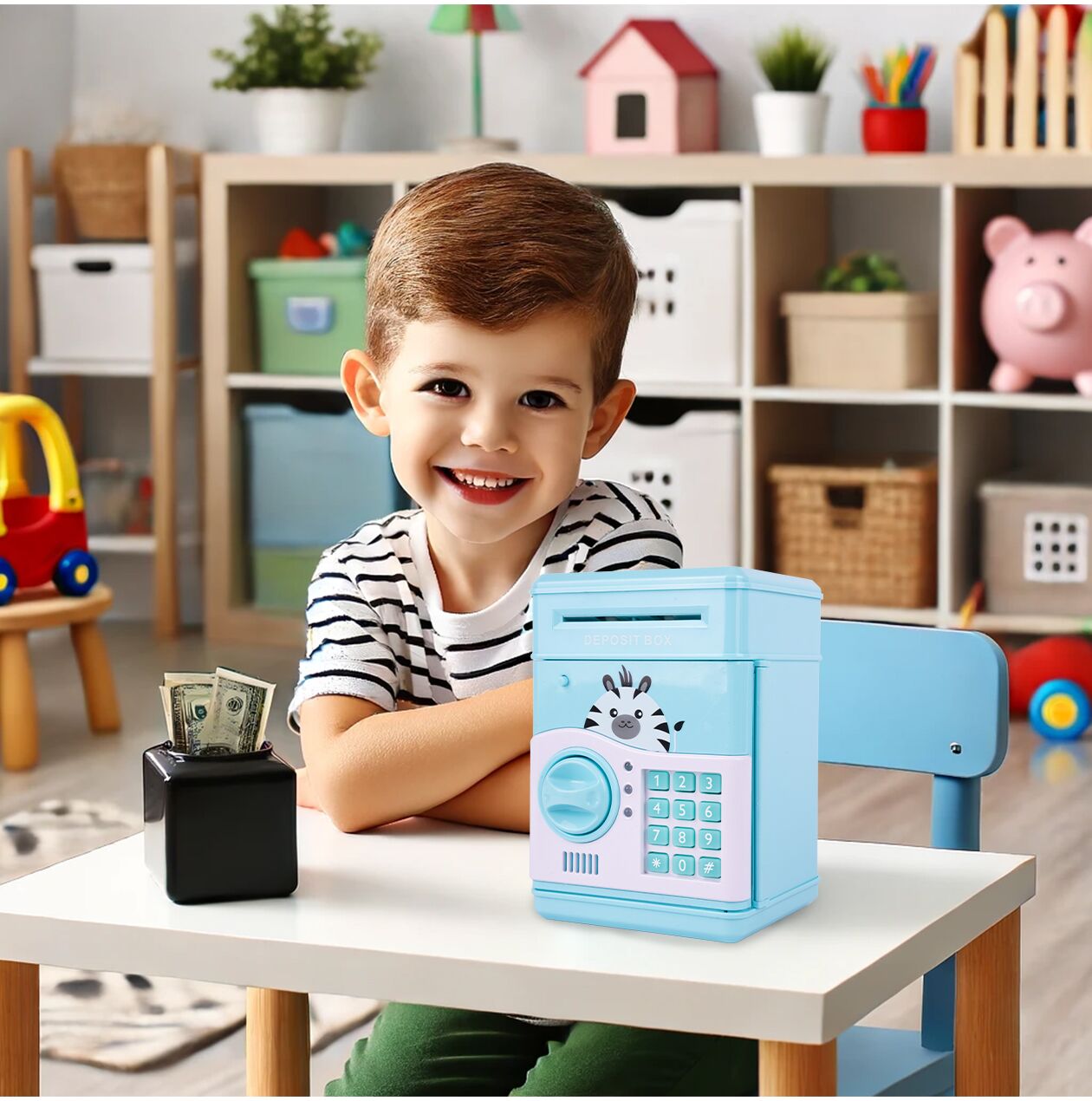 - Rozwój umiejętności matematycznych: Poprzez umożliwienie dzieciom zbierania monet i banknotów oraz liczenia ich, zabawki sejfów skarbonek mogą pomóc w rozwijaniu umiejętności matematycznych