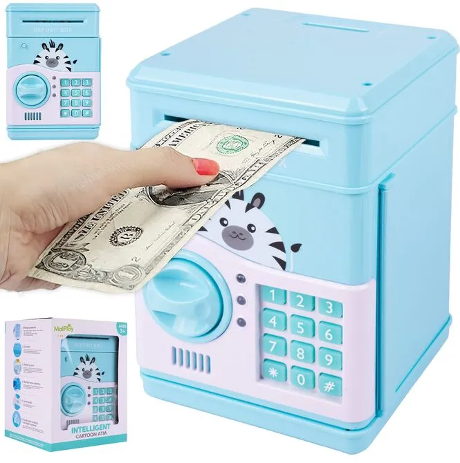SEJF NA MONETY I BANKNOTY KOD DOSTĘPU SKARBONKA ZEBRA ŚWIATŁO DŹWIĘK DUŻA