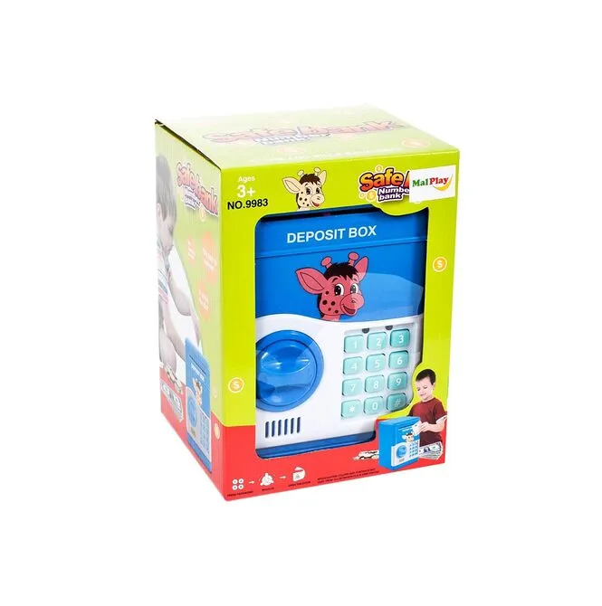 Skarbonka w kształcie sejfu to wiele godzin zabawy i nauki oszczędzania. Do sejfu można wpłacać pieniądze, oraz wyjmować po wprowadzeniu odpowiedniego kodu. W momencie przyłożenia banknotu do wlotu, sejf pobierze go automatycznie oraz zacznie grać jedna z 7 melodyjek.