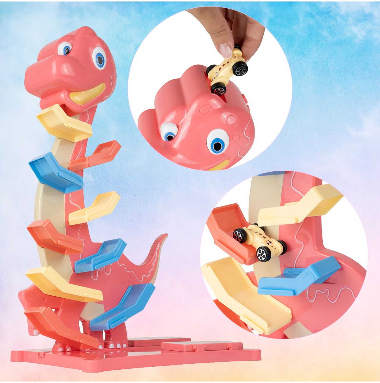 Naše skluzavka do autíčka podporuje manuální zručnost každého dítěte a zároveň rozvíjí kognitivní dovednosti. Různé prvky trénují úchop vašeho dítěte - vyrobeno speciálně pro malé dětské ručičky. Skluzavka ve tvaru roztomilého dinosaura vašeho nejmenšího jistě zaujme a vrátí ho do pravěku!