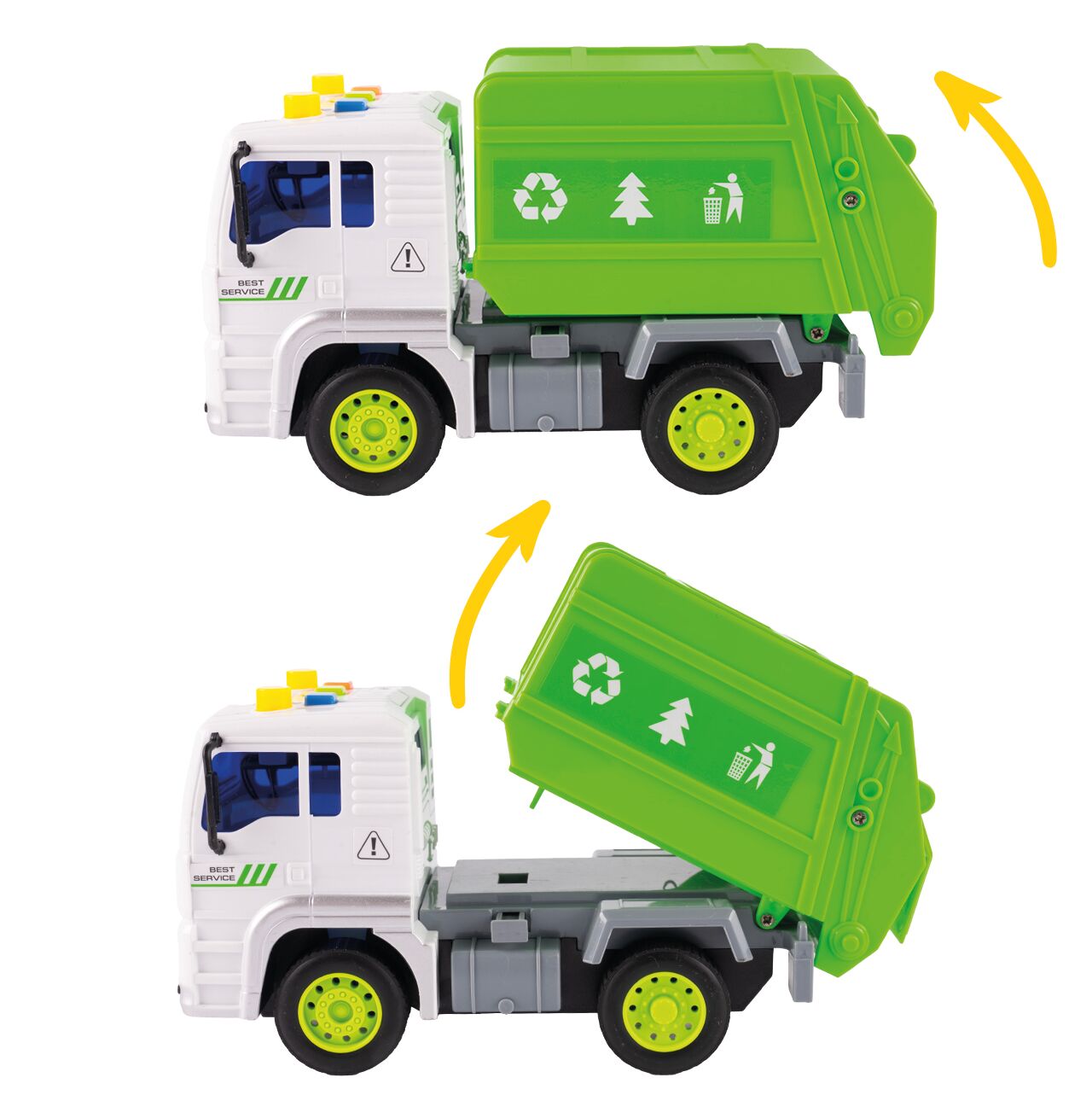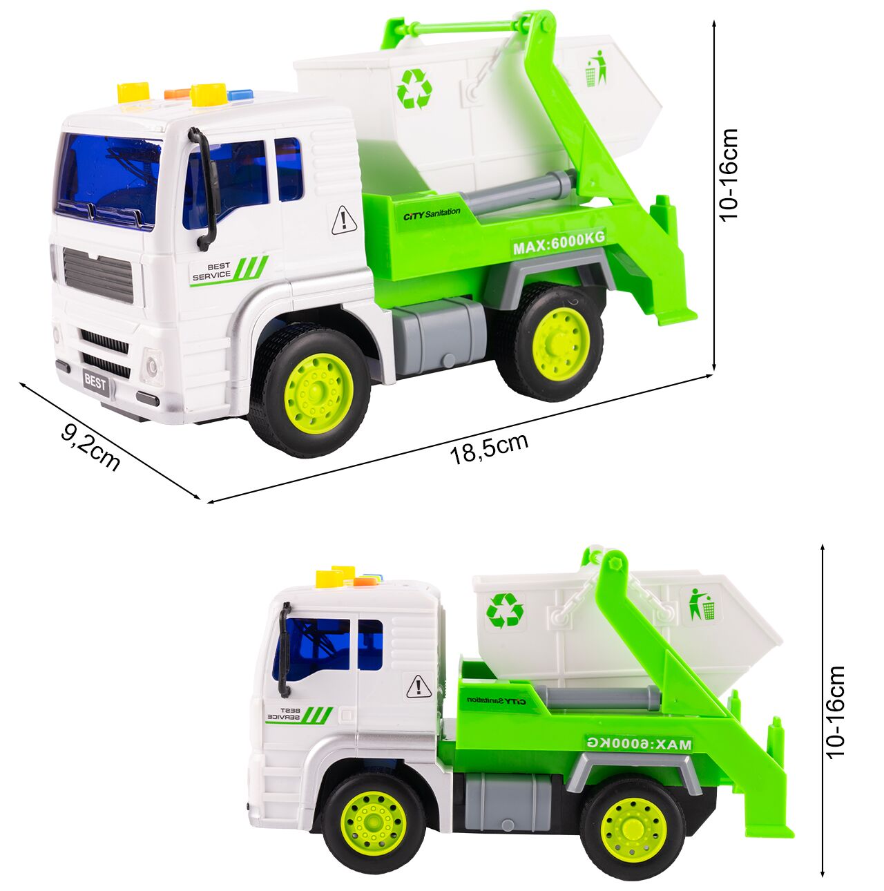 Nádobu na odpadky je možné zdvihnúť a otvoriť zadnú klapku, čo umožňuje realistické zobrazenie procesu vyprázdňovania odpadu. Dieťa môže používať drobné predmety ako odpad a prepravovať ich vo vozidle.