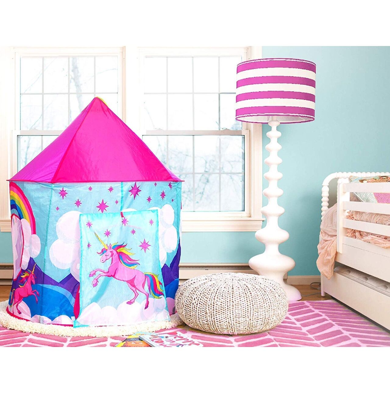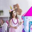 Náš produkt bol prepracovaný do najmenších detailov. Pestrofarebné, očarujúce obrázky - dúha, jednorožce, hviezdy... to všetko vám pomôže cítiť sa ako skutočná princezná v skutočnom zámku! Stan má vchod , ktorý je možné hore uviazať alebo nechať zatvorený.