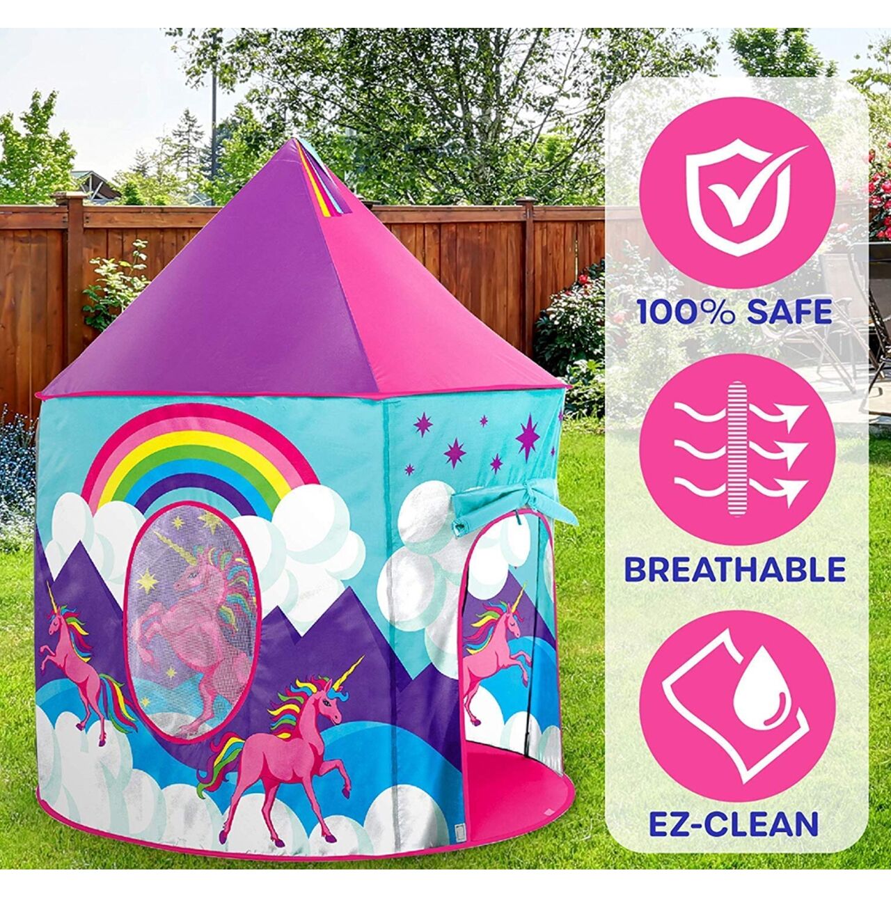 Stan má podobu pôvabného ružového zámku a má sieťované okná, cez ktoré môžete pozorovať, čo sa deje vonku, a poskytujú ochranu pred hmyzom pri hraní vonku. Vchod do stanu sa dá jednoducho zakryť závesom.