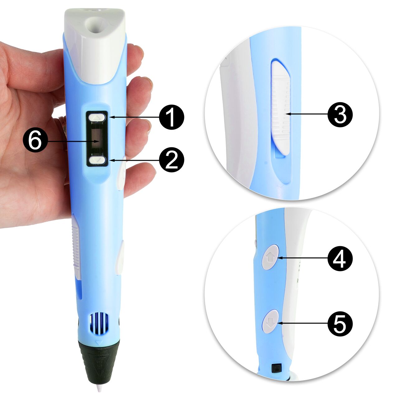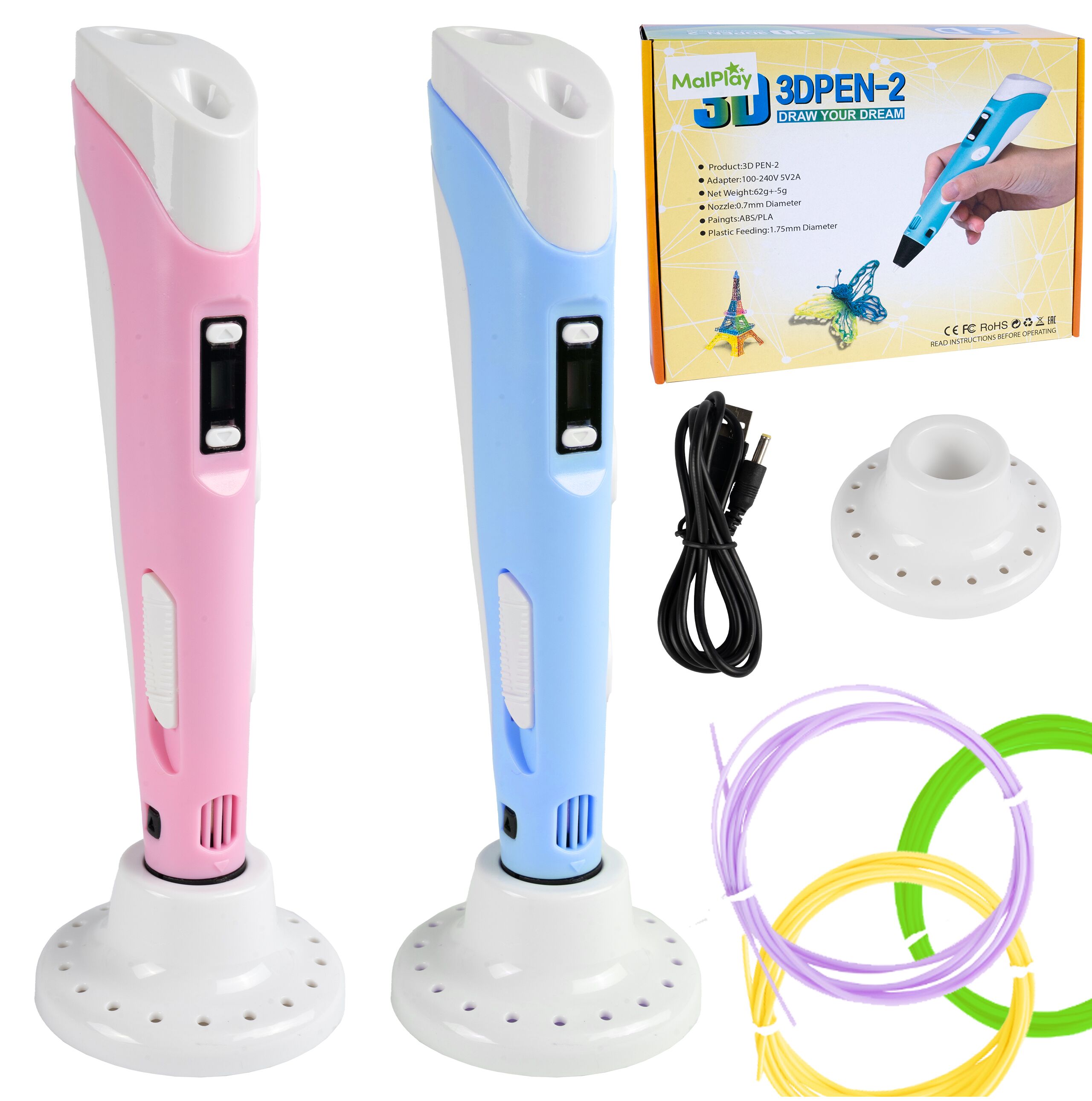 Unser 3D-Stift zeichnet mit beheiztem PCL-Filament , das sich durch hohe Flexibilität und niedrigen Schmelzpunkt auszeichnet. Deshalb wurde es in unserem Produkt verwendet, um die Gefahr von Verbrennungen zu vermeiden. Die Niedertemperaturdüse ermöglicht dem Kind ein sicheres Arbeiten.