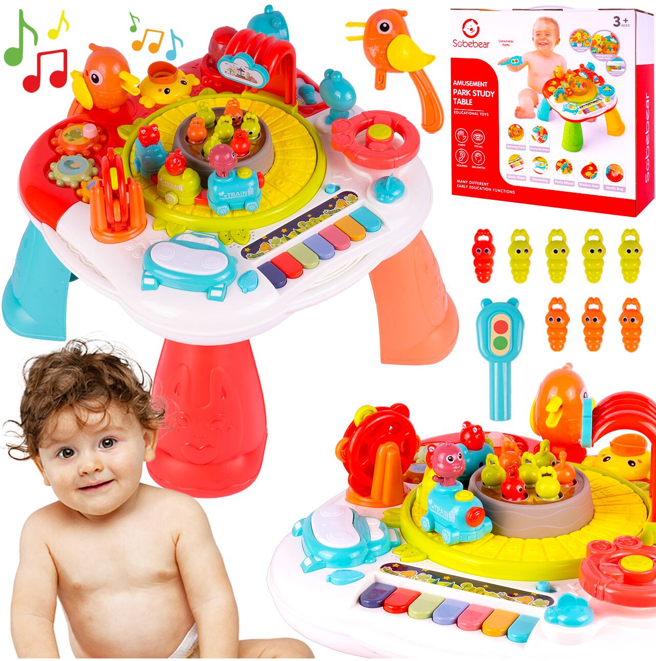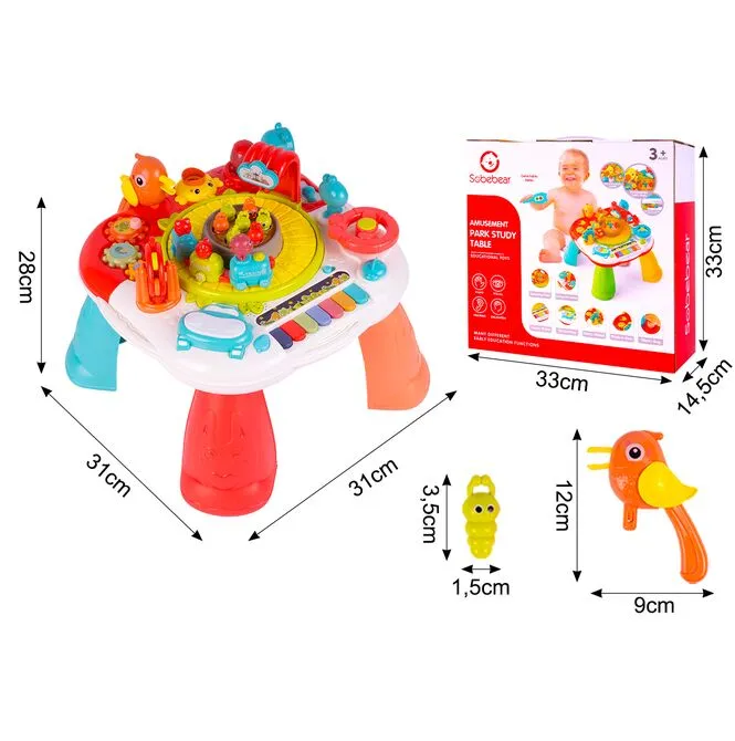 Stolik z interaktywnym panelem 2w1 pomoże dziecku poprzez zabawę rozwijać jego sprawność motoryczną i zdolności manualne, słuch oraz zdolność rozumienia świata, kształtów i kolorów.