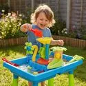 Największą zaletą tego modelu jest to, że łączy kilka sposobów zabawy naraz. Można bawić się wodą, piaskiem i akcesoriami jednocześnie, dzięki czemu dziecko nie traci zainteresowania po kilku minutach. To świetna opcja dla maluchów, które lubią eksperymentować, przesypywać, nabierać i obserwować efekty własnych działań.
