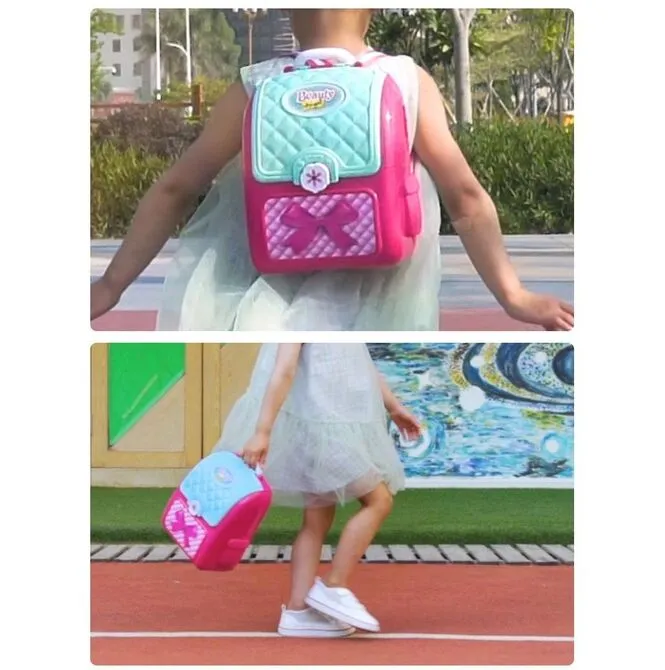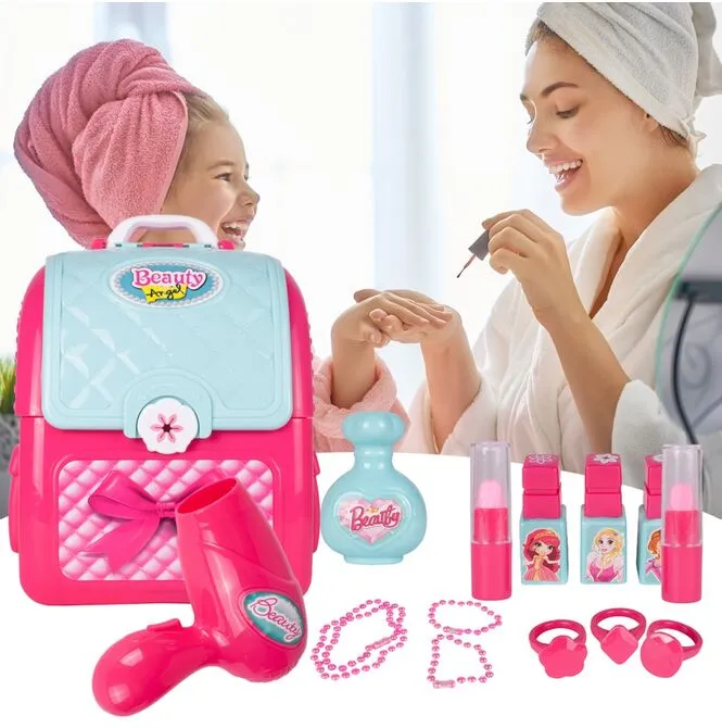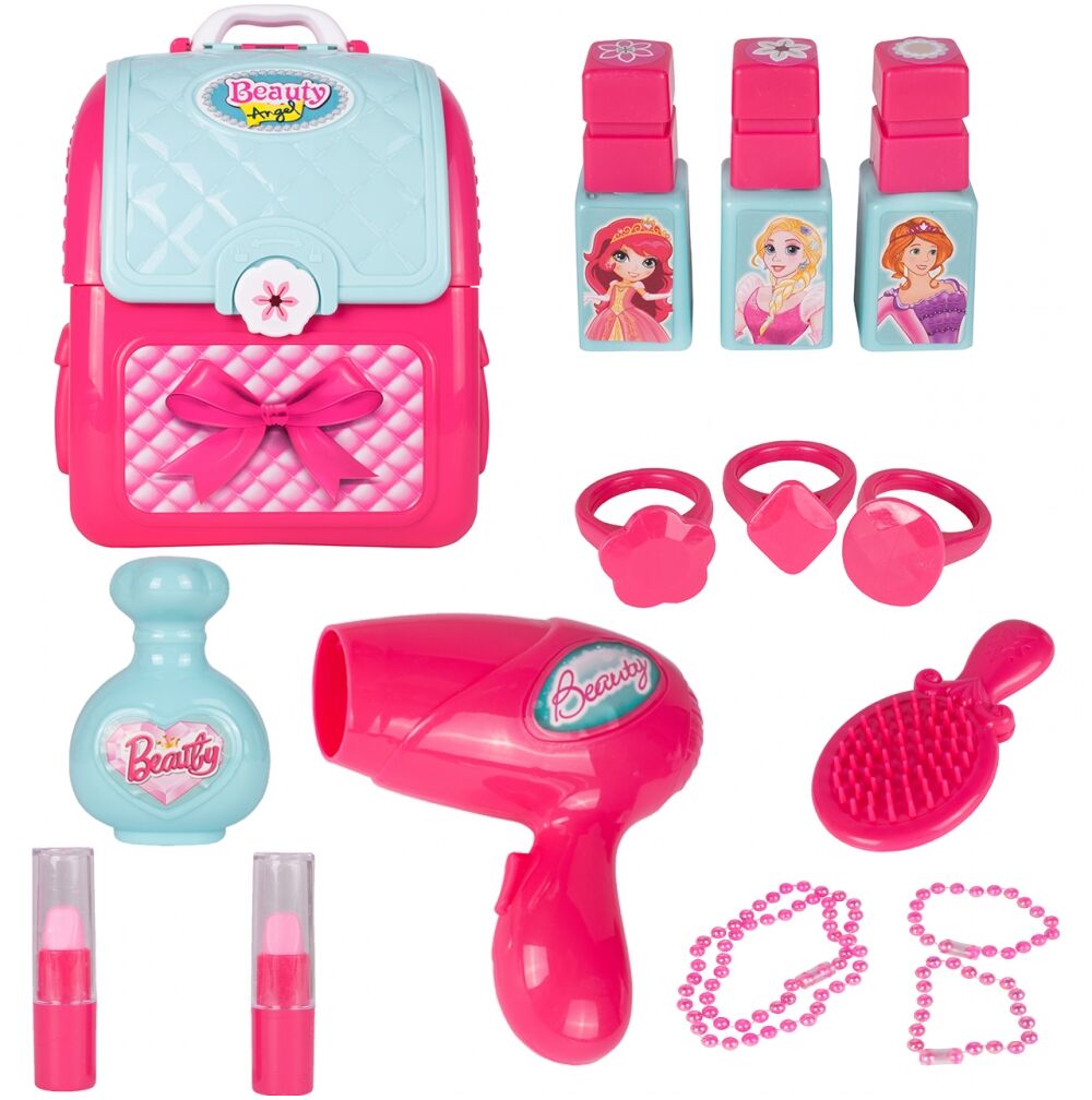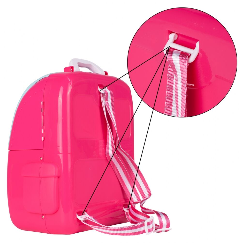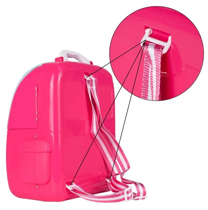 Sada kosmetiky a vlasových doplňků v kufru ve stylu batohu. Perfektní hračka pro malou slečnu. Batoh je vybaven pohodlným madlem a nastavitelnými popruhy, takže si ho vaše dítě bude moci vzít všude s sebou.