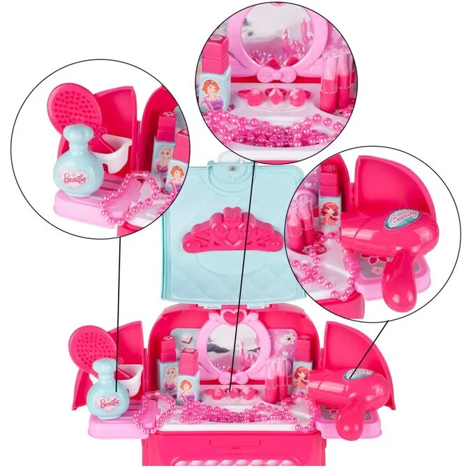 Fantastická hračka, toaletní stolek pro malou ženu! Každá dívka sní o vlastní kosmetice a doplňcích, aby se cítila jako dospělá žena.