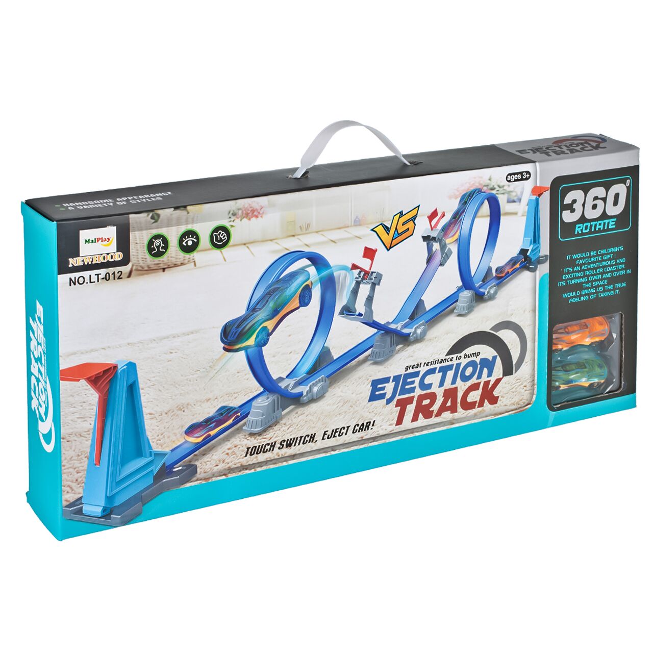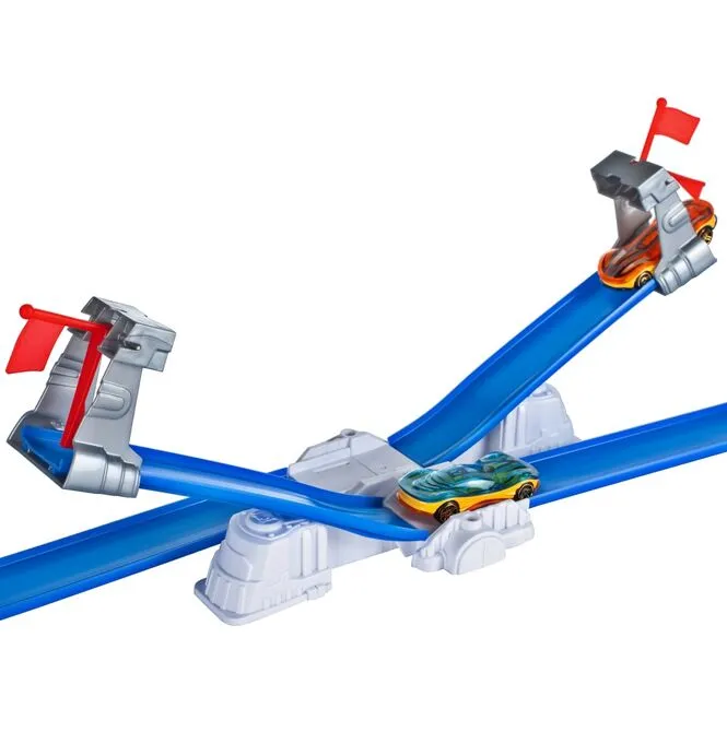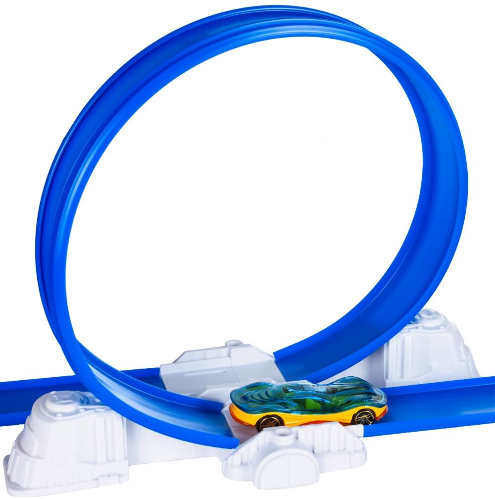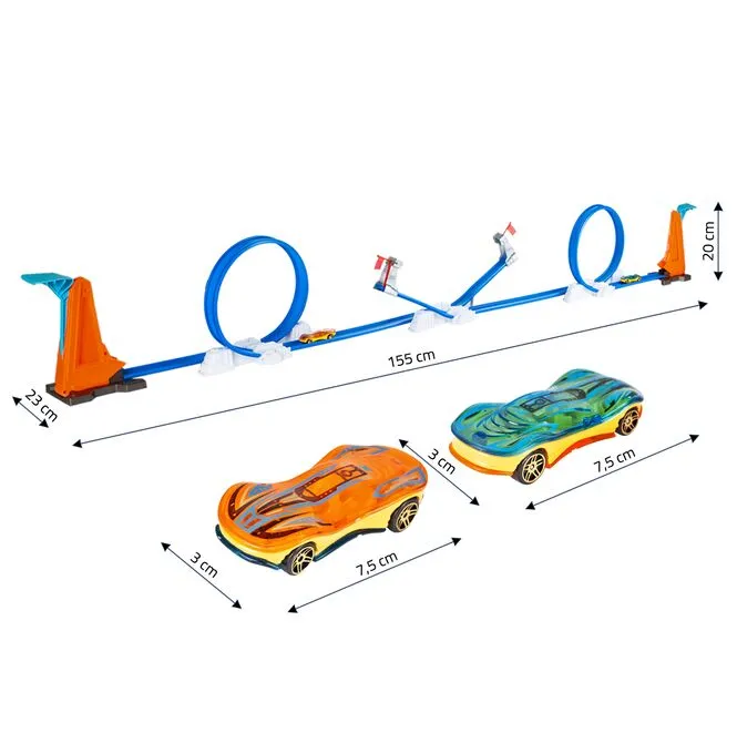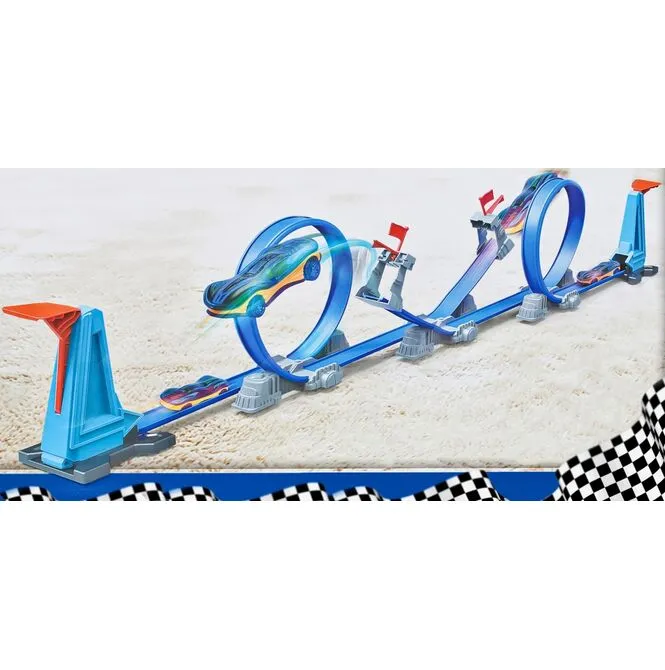 Dzięki dwóm pętlom i wyrzutni zabawa jest jeszcze ciekawsza. Po przejechaniu przez koniec pętli unosi się czerwona flaga.