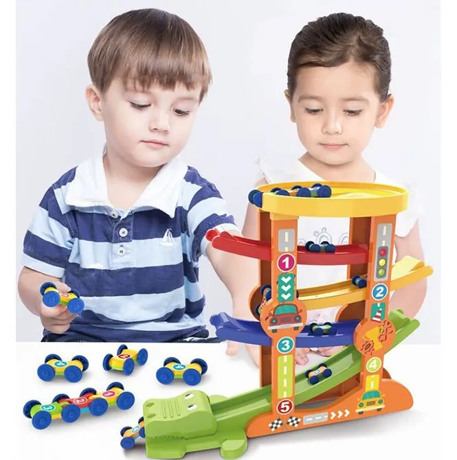 Każdy poziom ma inny kolor, autka również są dwukolorowe, dzięki temu zabawka pełni funkcję edukacyjną i uczy pierwszych kolorów.