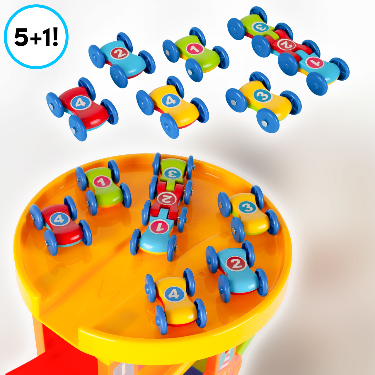 Jedes Auto ist nummeriert (1–5), sodass Kinder Zahlen lernen, Farben vergleichen und Rennen mit eigenen Regeln erfinden können. Sie können die Autos nach Farbe oder Nummer sortieren – ein tolles Lernerlebnis!