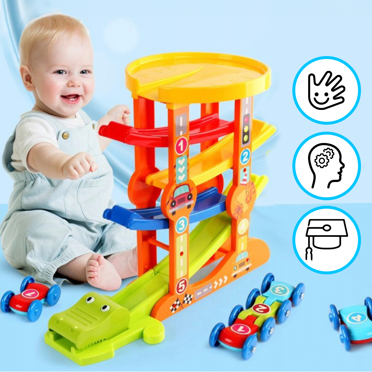- 5-stufige Autorennbahn mit dynamischer Rutsche