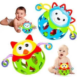 Hračka je vybavena barevnými korálky, které lze posouvat podél rukojetí, což poskytuje batoleti další hmatové a vizuální vjemy. Posouvání korálků je nejen zábavné, ale podporuje také rozvoj jemné motoriky, procvičování prstů vašeho dítěte a zlepšování koordinace ruka-oko.