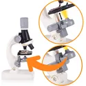 Tělo mikroskopu lze naklonit a přizpůsobit ho výšce a poloze dítěte. Stabilní základna poskytuje bezpečnou oporu během pozorování.