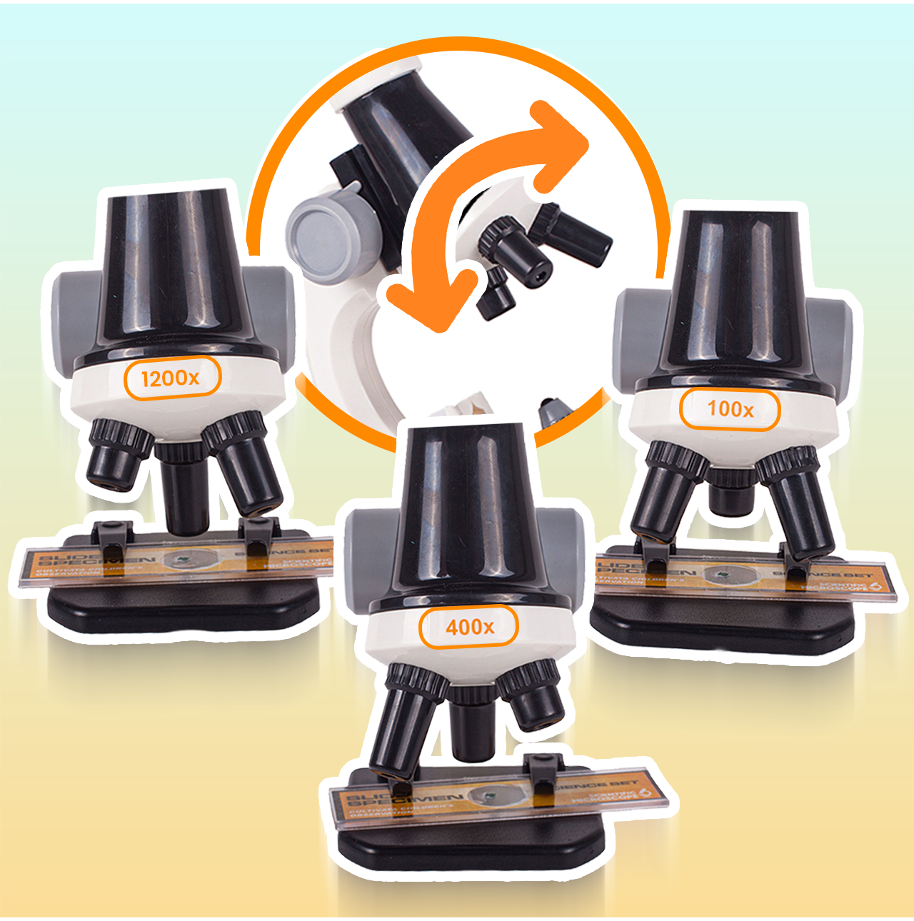 VĚDECKÝ HRAČKOVÝ MIKROSKOP SE VZORKY, OTOČNÁ HLAVICE, 3 ZVĚTŠENÍ