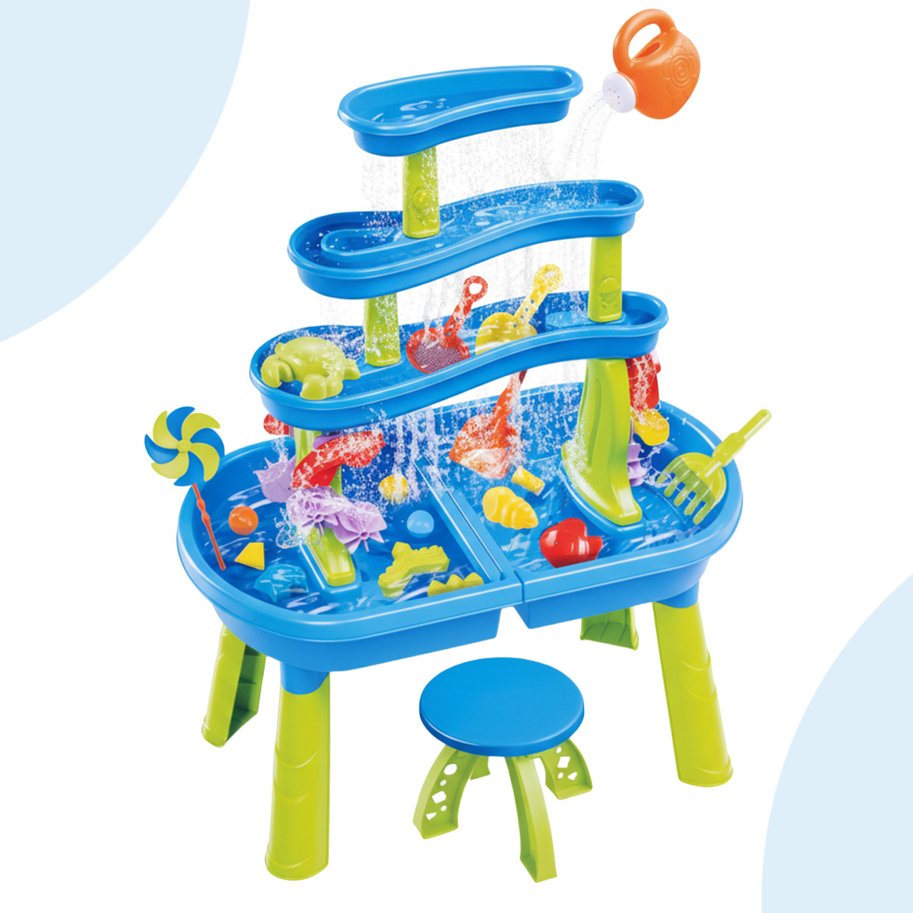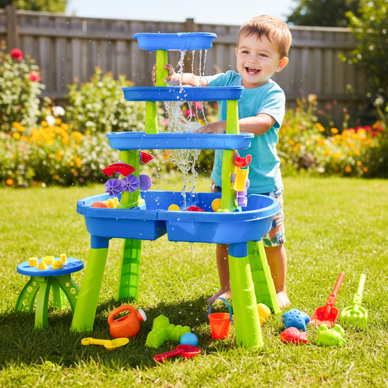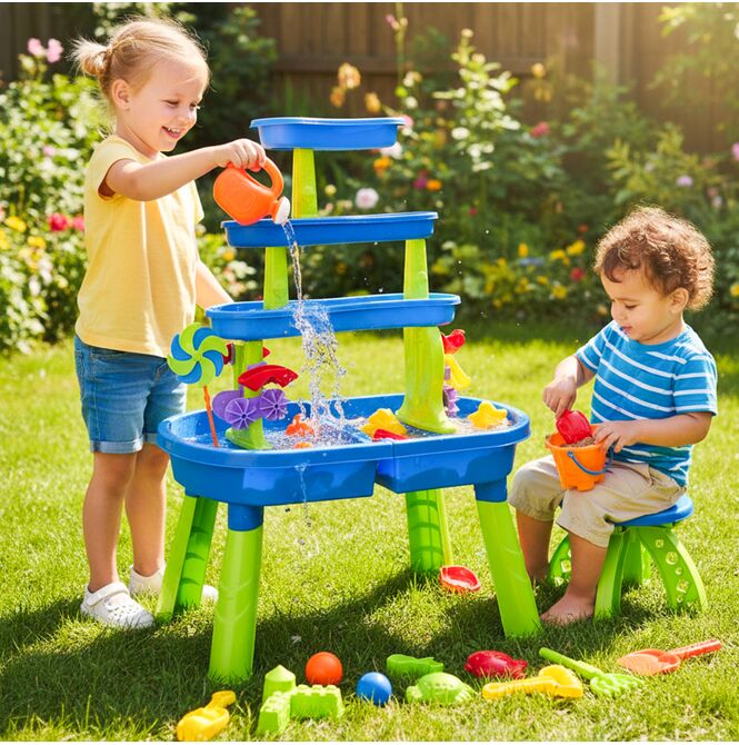 Největším lákadlem stolu je jeho víceúrovňová konstrukce , která přitahuje pozornost a povzbuzuje děti k experimentování. Voda litá shora stéká po úrovních dolů , což dětem umožňuje sledovat celý proces a aktivně ovlivňovat hru. To je nejen velká zábava, ale také přirozeně rozvíjí zvědavost, motorickou koordinaci a myšlení příčiny a následku.