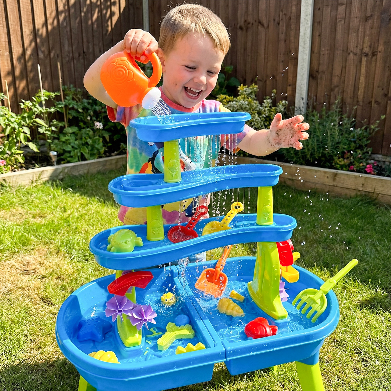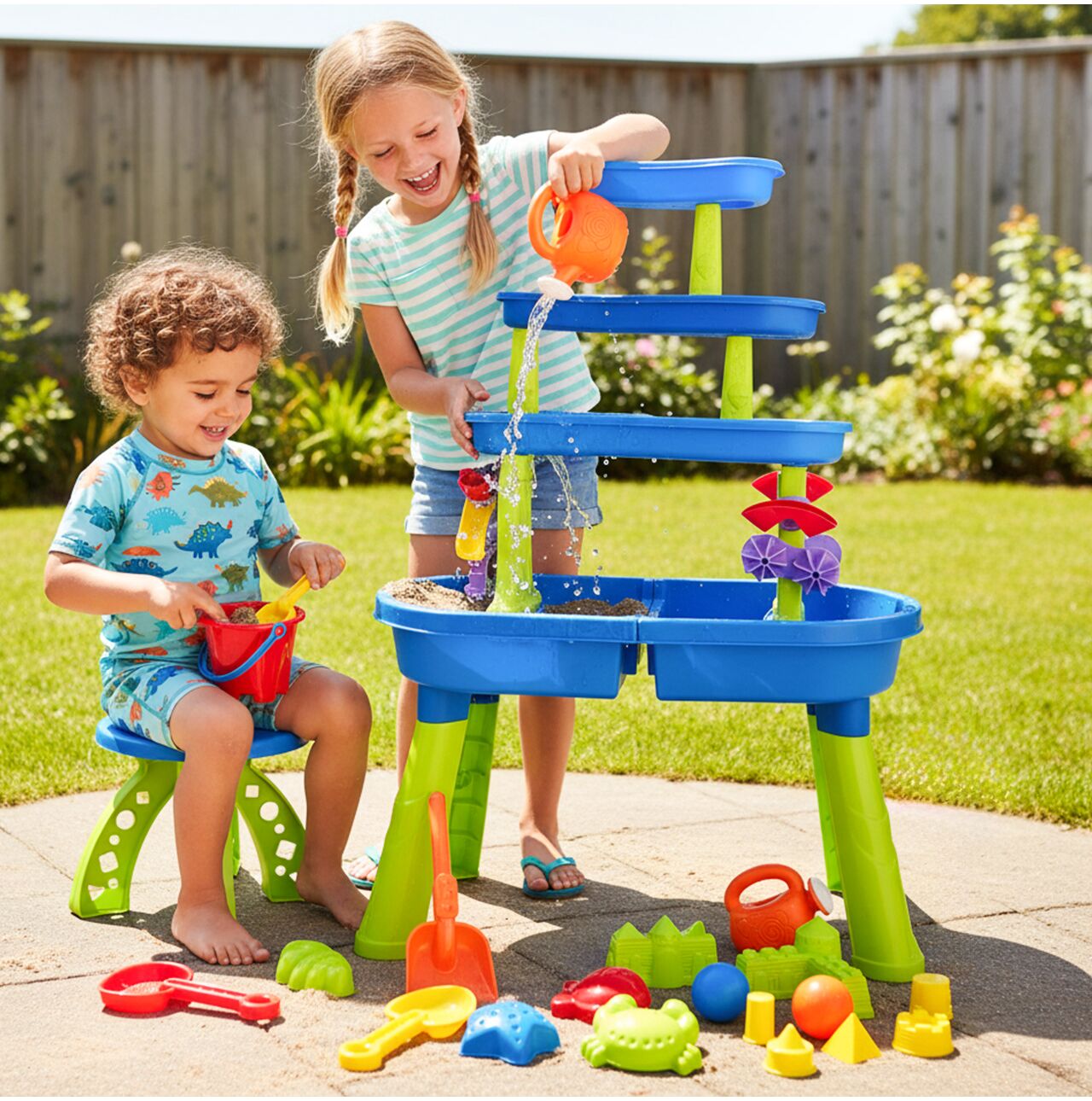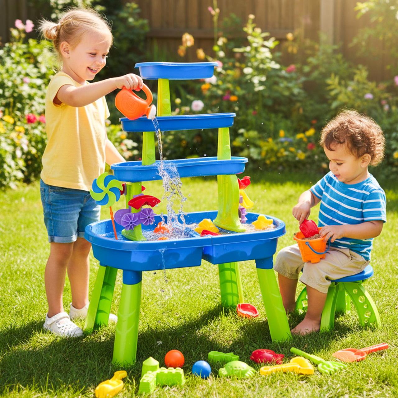 Největším lákadlem stolu je jeho víceúrovňová konstrukce , která přitahuje pozornost a povzbuzuje děti k experimentování. Voda litá shora stéká po úrovních dolů , což dětem umožňuje sledovat celý proces a aktivně ovlivňovat hru. To je nejen velká zábava, ale také přirozeně rozvíjí zvědavost, motorickou koordinaci a myšlení příčiny a následku.