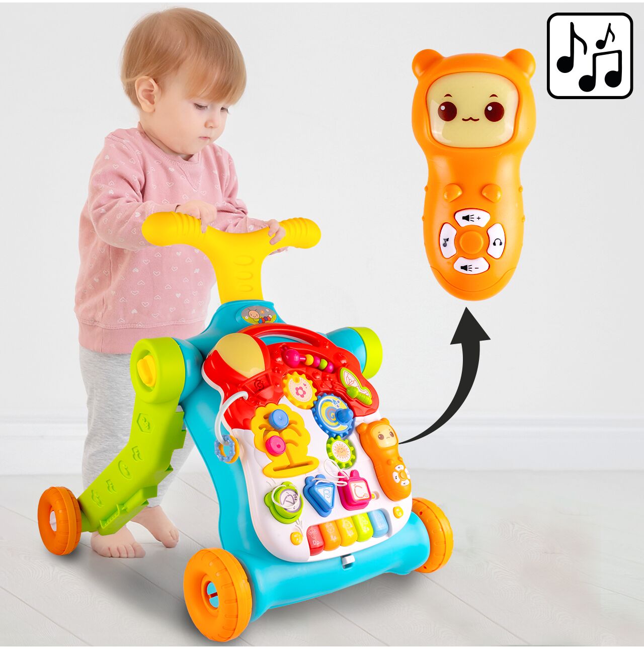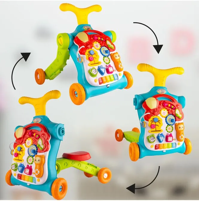Výrobek, který představujeme, spojuje funkci odstrkovadla, výukového stolu a panelu do postýlky v jednom. Kočárek, který doporučujeme pro všechna miminka starší 9 měsíců, je perfektním pomocníkem při učení samostatné chůze.