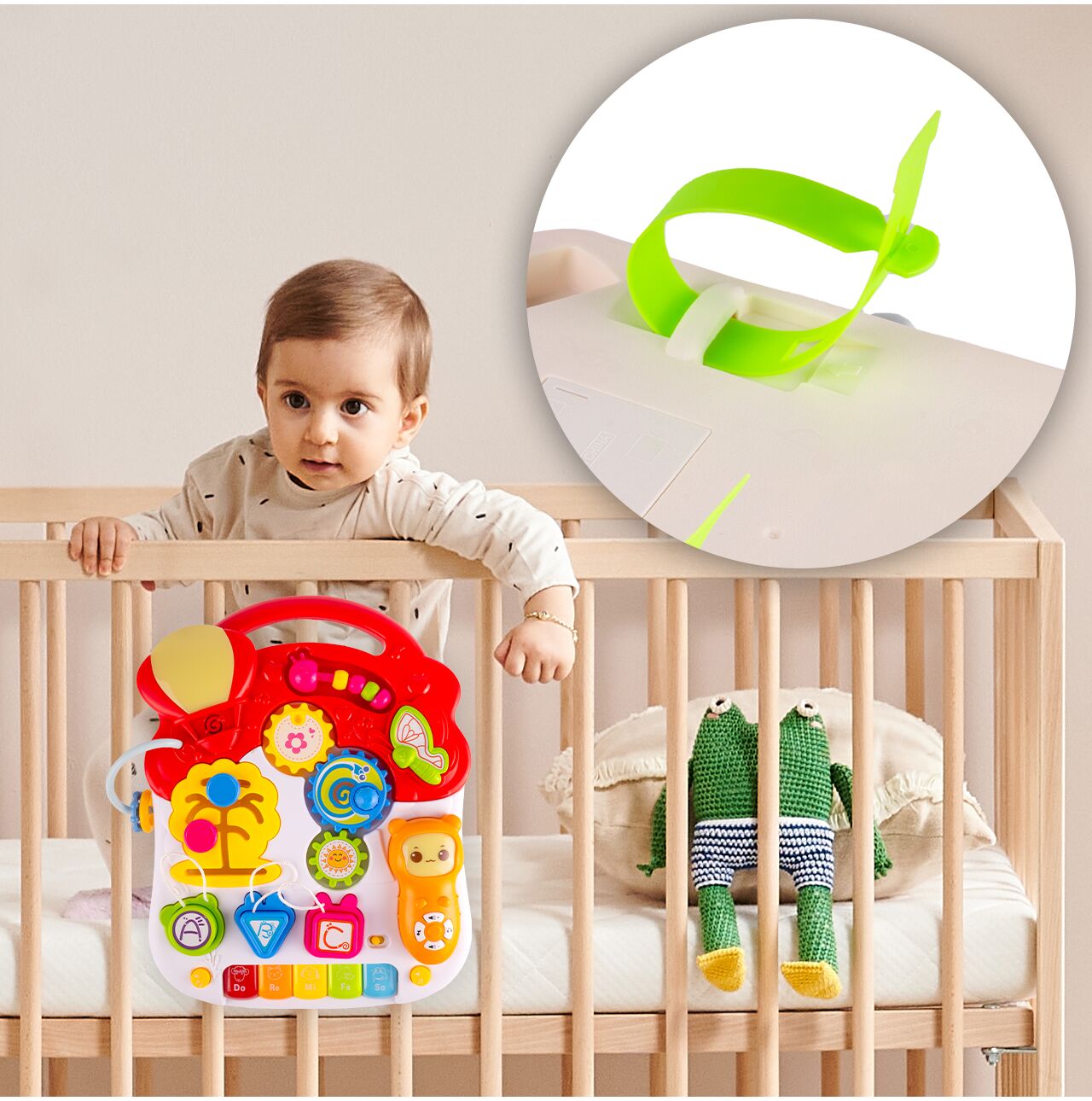 Psací stůl lze jednoduše odejmout a pomocí pásů připevnit na dětskou postel. Díky tomu zábava nikdy nekončí!