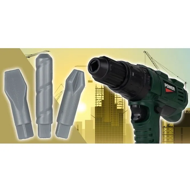 Wiertarka napędzana jest dwoma bateriami paluszkami AA. Po naciśnięciu kręci się wiertło do przodu lub do tyłu w zależności od wybranego kierunku. Specjalny przełącznik zmienia obroty z lewych na prawe, a dołączone do zestawu akcesoria sprawią, że zabawa stanie się bardziej ekscytująca!