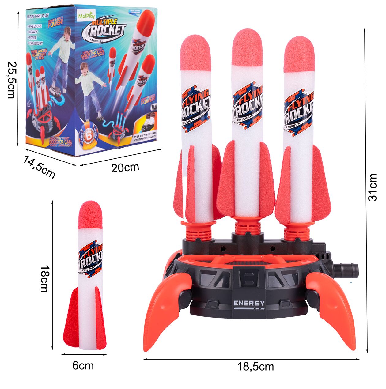 Dzięki prostemu mechanizmowi wyrzutni, nawet najmłodsi bez trudu poradzą sobie z jej obsługą. Po prostu naciskając na elastyczny zbiornik, można szybko i łatwo odpalić rakietę, co sprawia, że zabawa jest intuicyjna i przyjemna dla wszystkich.