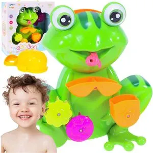 Tryskające zwierzątko to prawdziwa zabawa podczas kąpieli. Wystarczy wlać przez główkę wody a z jej ust będzie lecieć woda, tworząc wodospad wraz z ruchomymi elementami. Do żabki dołączono podbierak / sitko w kształcie rybki, 4 kubeczki oraz kolorowe rybki co urozmaici zabawę w wodzie.