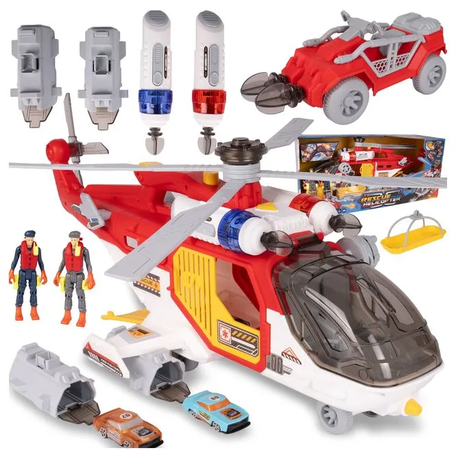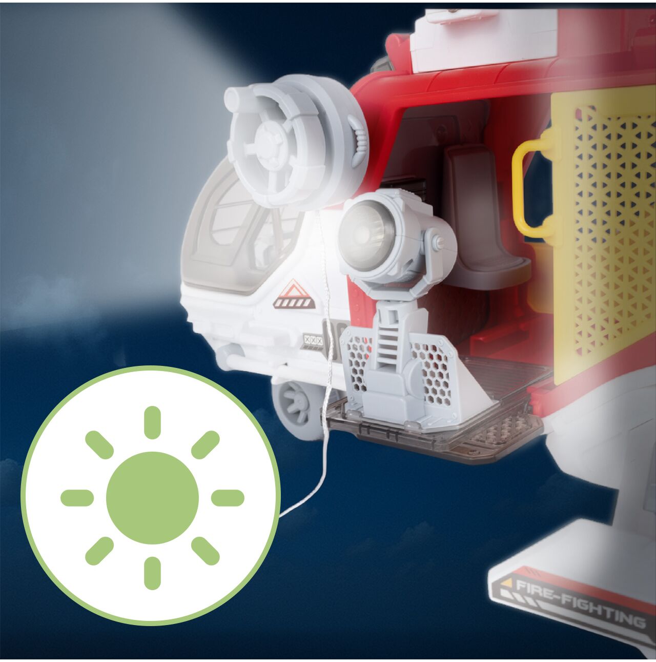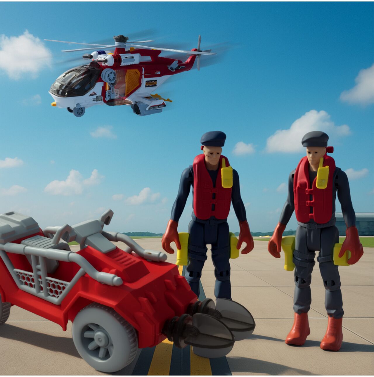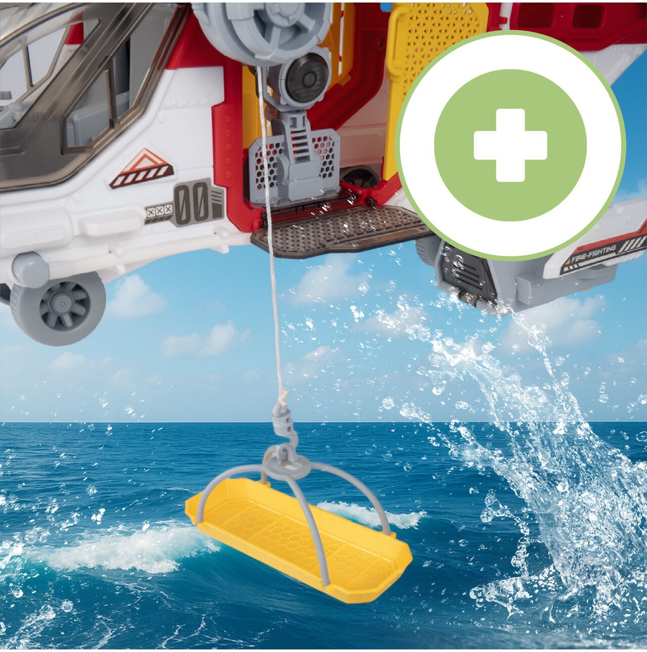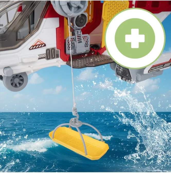 Nejzajímavější část mise? Naviják s hákem a košem . Dítě může spustit koš, zvednout „zraněného“ nebo náklad a bezpečně ho vytáhnout na palubu. Jednoduché mechanické ovládání učí koordinaci a poskytuje uspokojení z úspěšné operace.