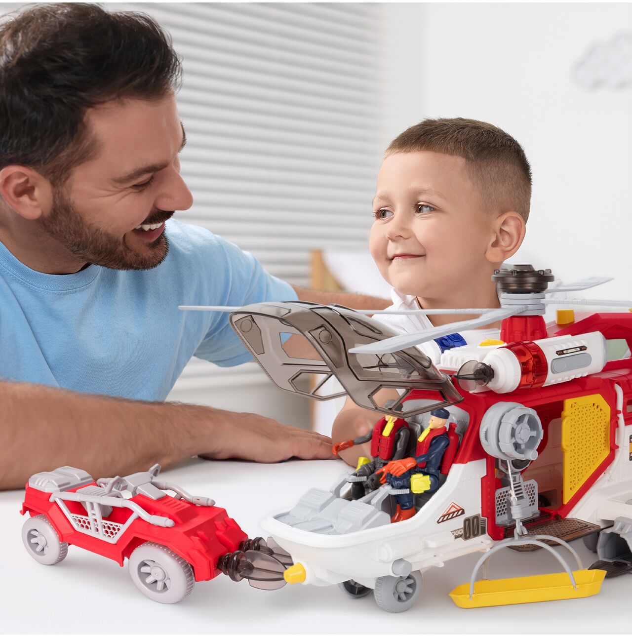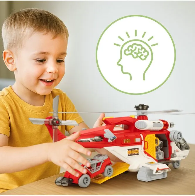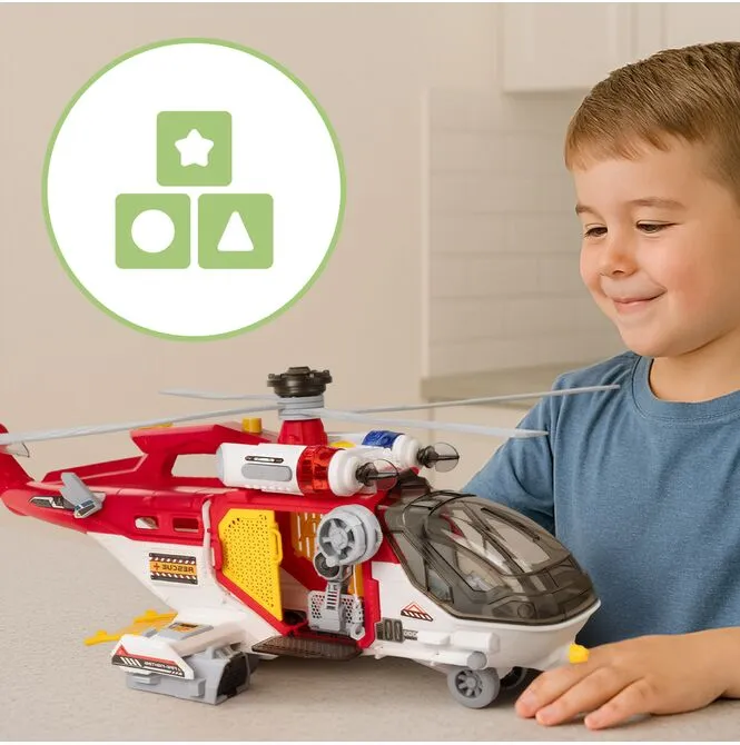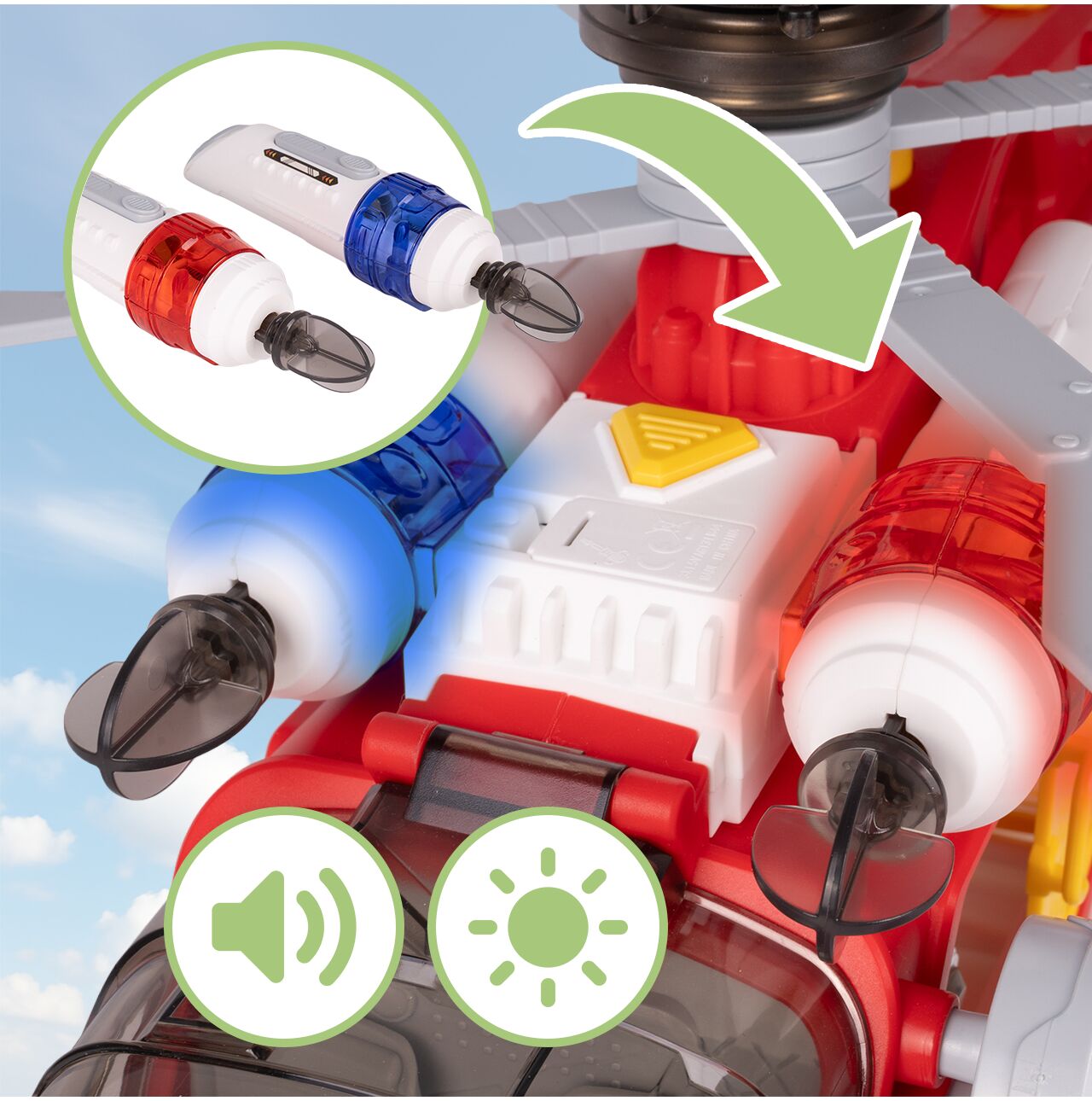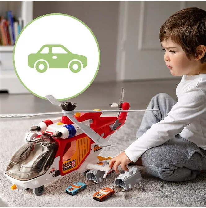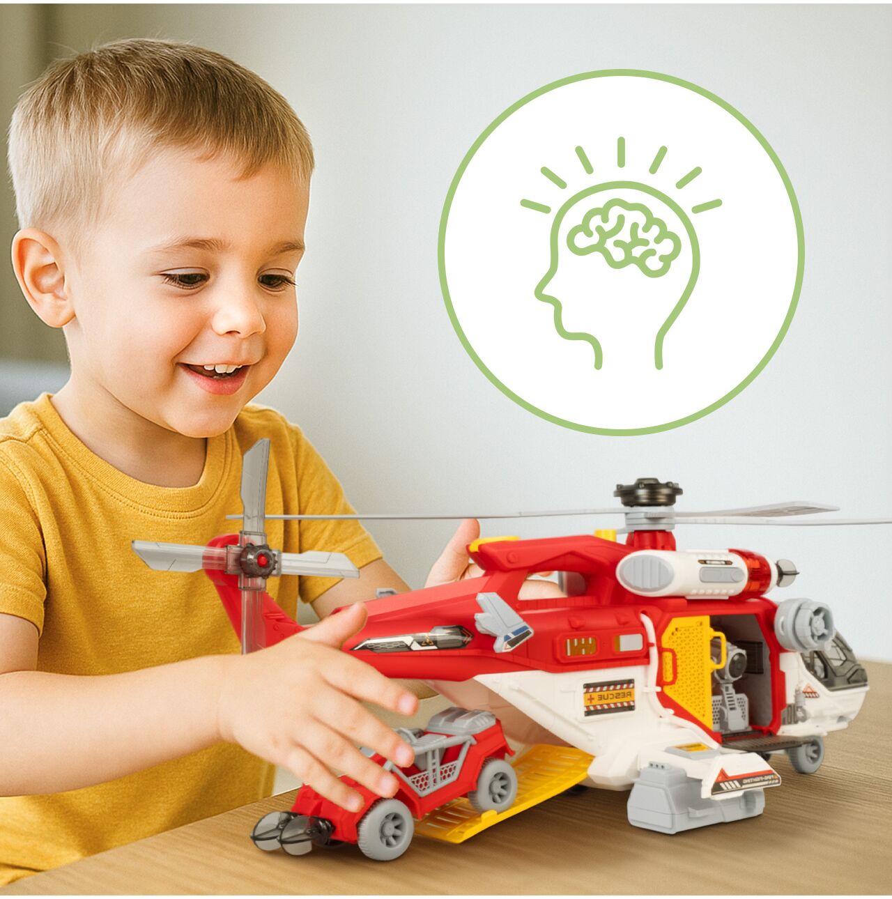 Když záleží na každé vteřině, tento velký vrtulník okamžitě vzlétne. Rotující rotory a realistické detaily trupu okamžitě vžijí děti do role pilotů a dispečerů. Robustní a zároveň lehká konstrukce je ideální pro časté vzlety a přistání na kobercích, dekách nebo stolech.