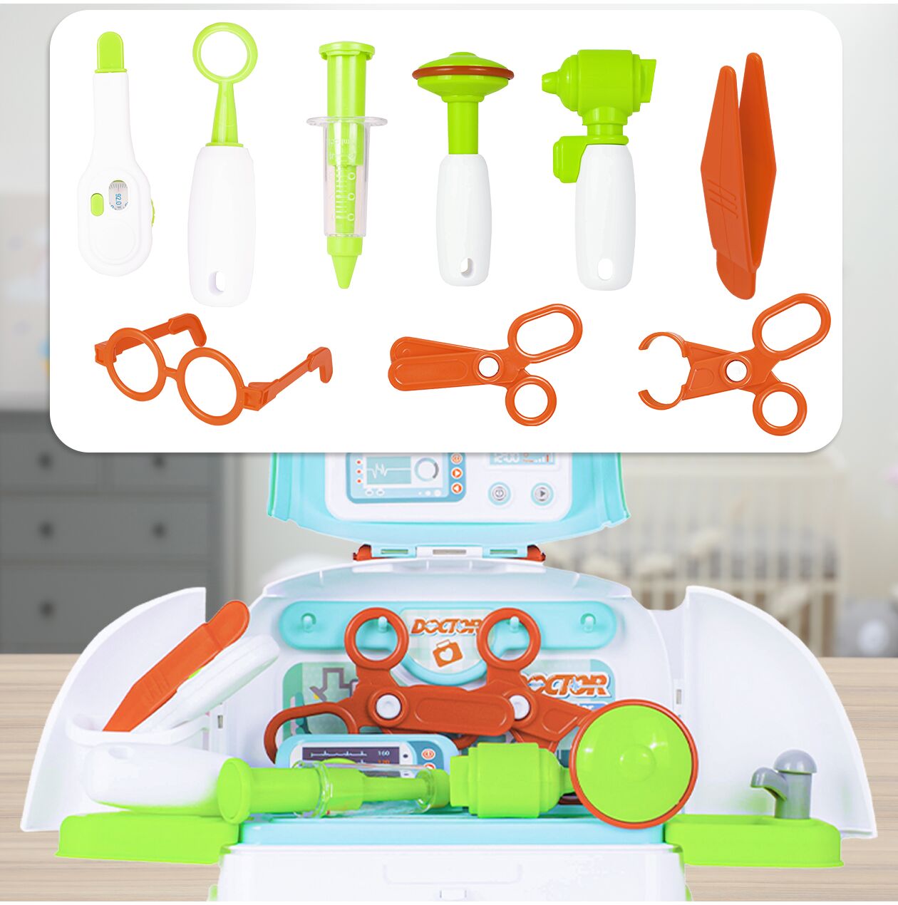 Wyposażony w liczny sprzęt medyczny zaznajomi dziecko z zasadami pierwszej pomocy oraz przygotuje do prawdziwej wizyty u lekarza.
